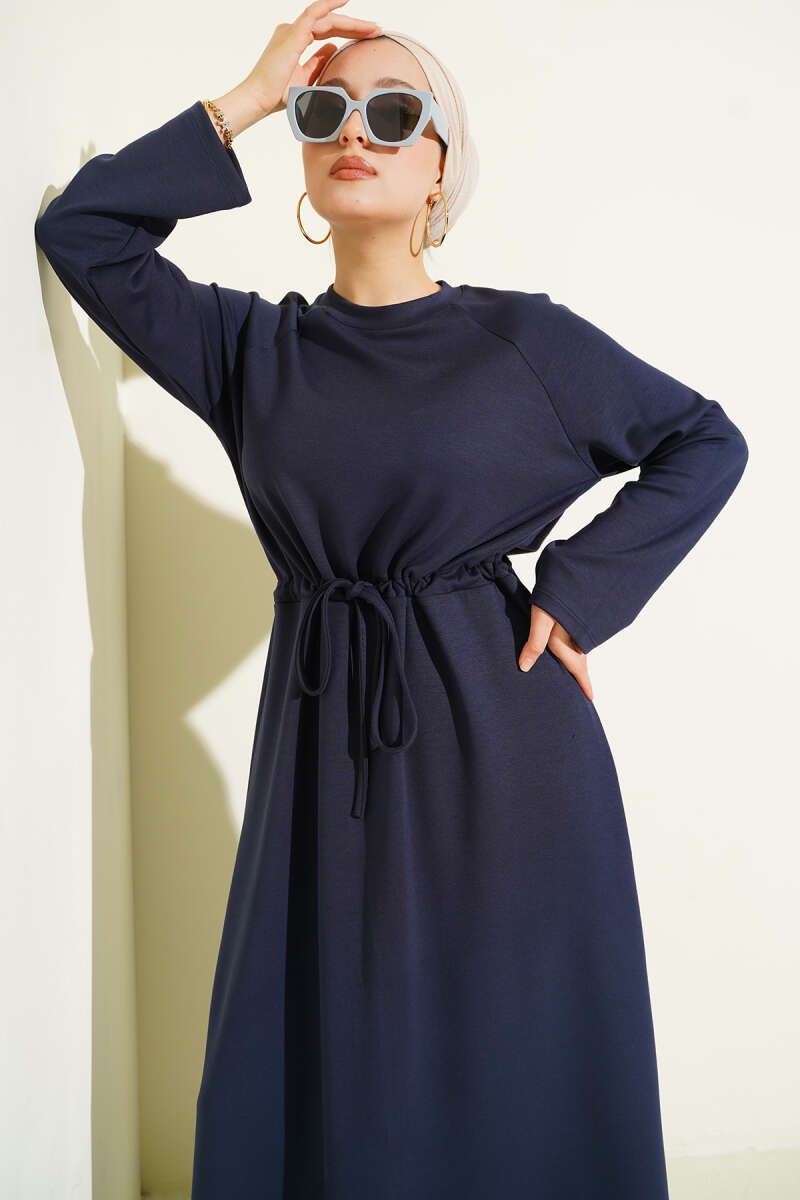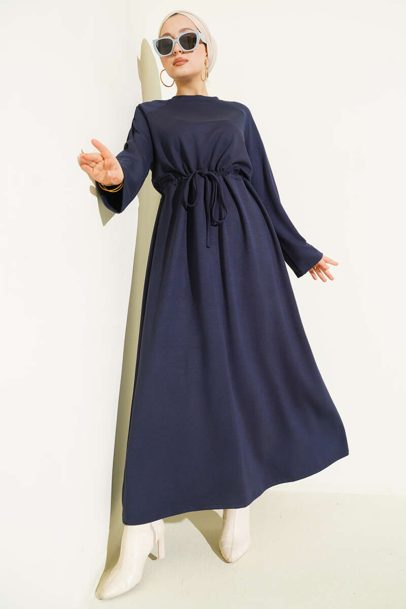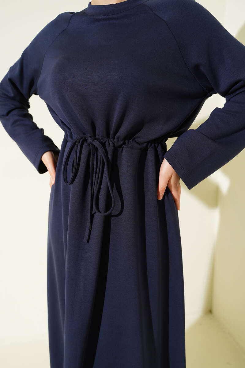 Bisiklet Yaka Bel Tünel Detaylı Elbise Bordo
