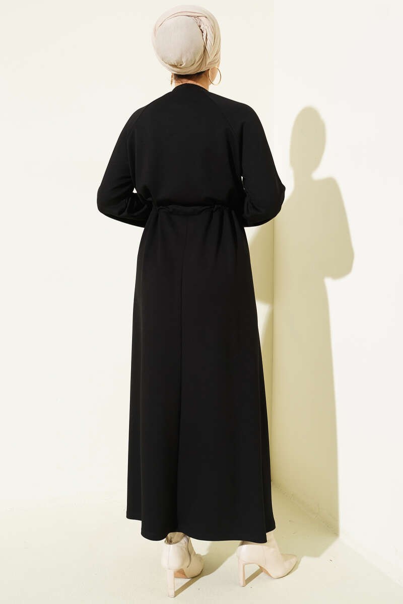Düşük Omuz Bürümcük Kimono İkili Takım Siyah