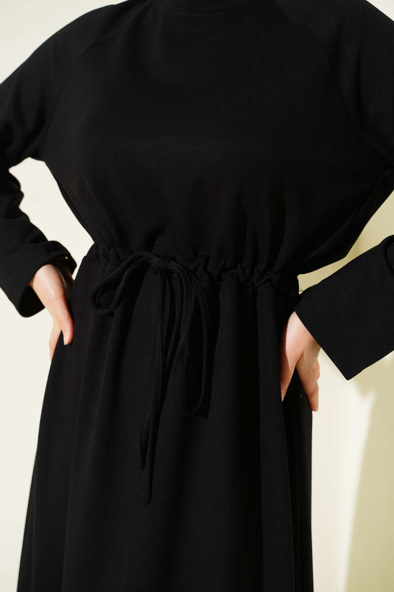 Bisiklet Yaka Bel Tünel Detaylı Elbise Bordo