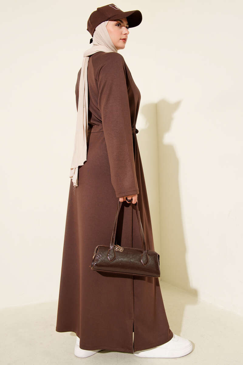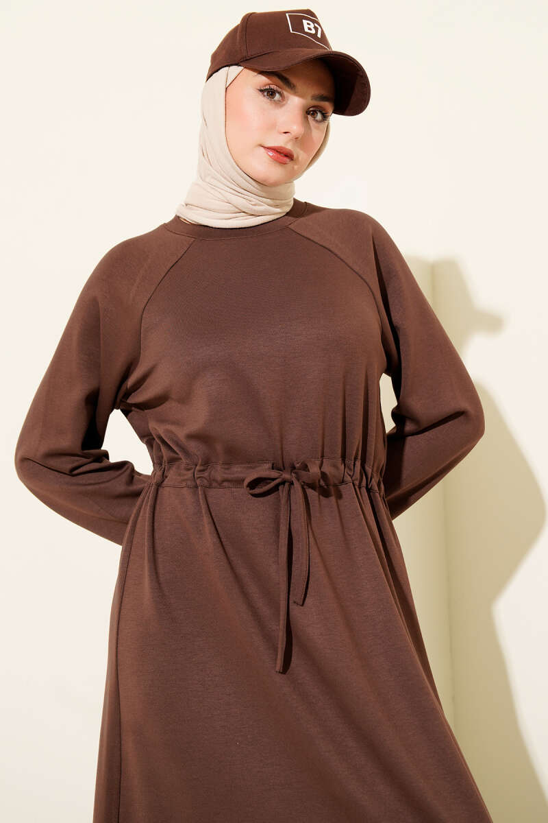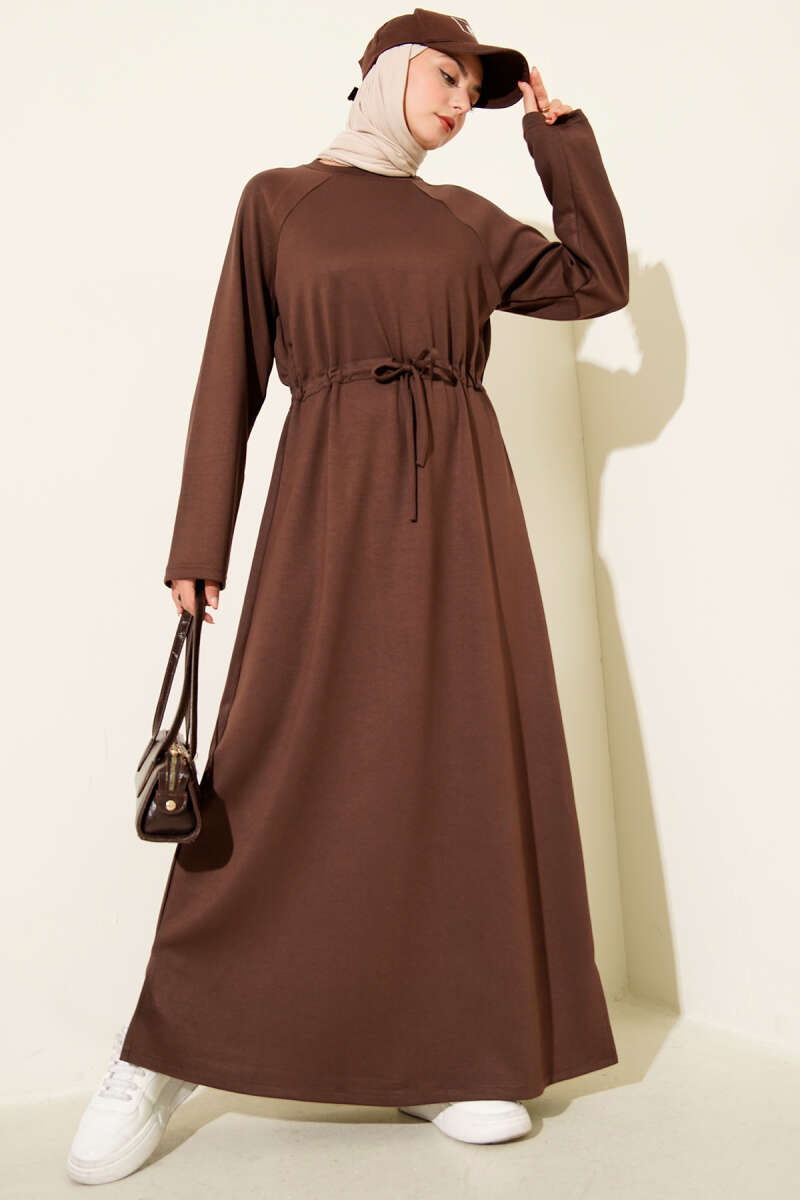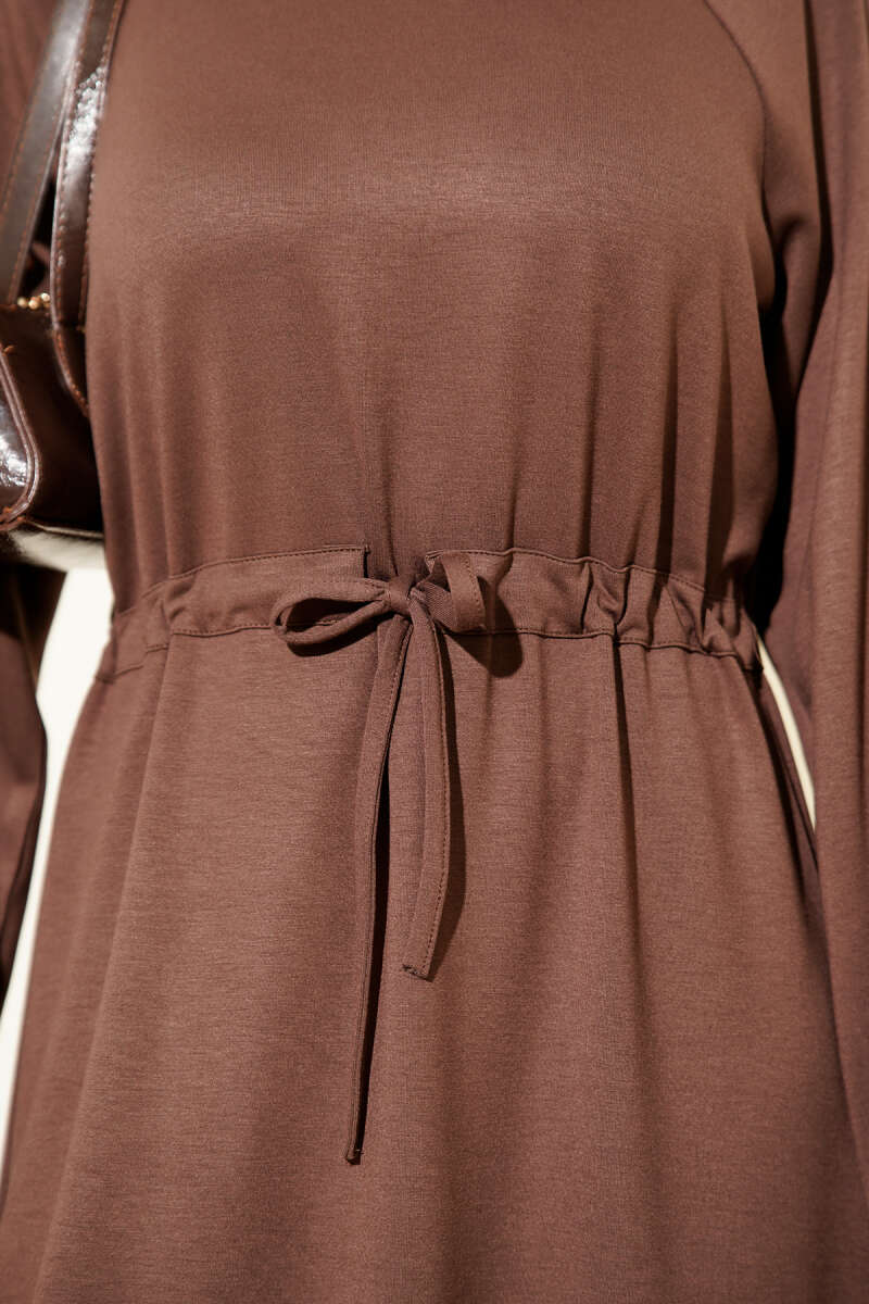 Bisiklet Yaka Bel Tünelli Loyşa Elbise Siyah