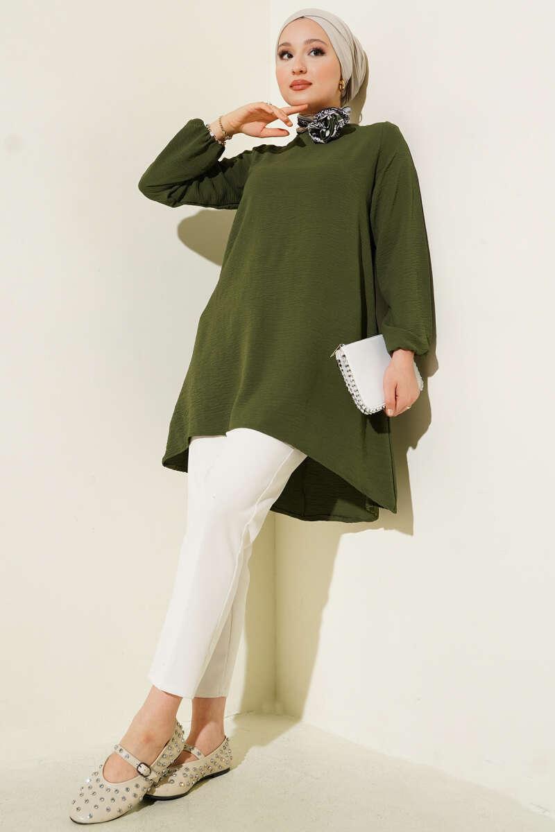 Bisiklet Yaka Biyeli Ayrobin Tunik Haki
