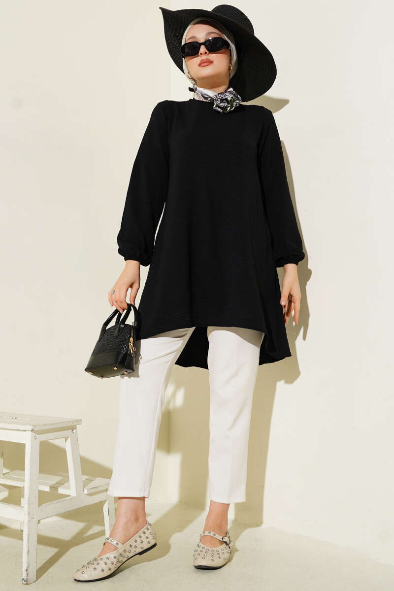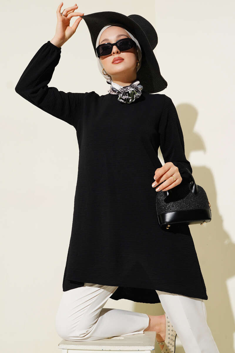 Bisiklet Yaka Biyeli Ayrobin Tunik Siyah