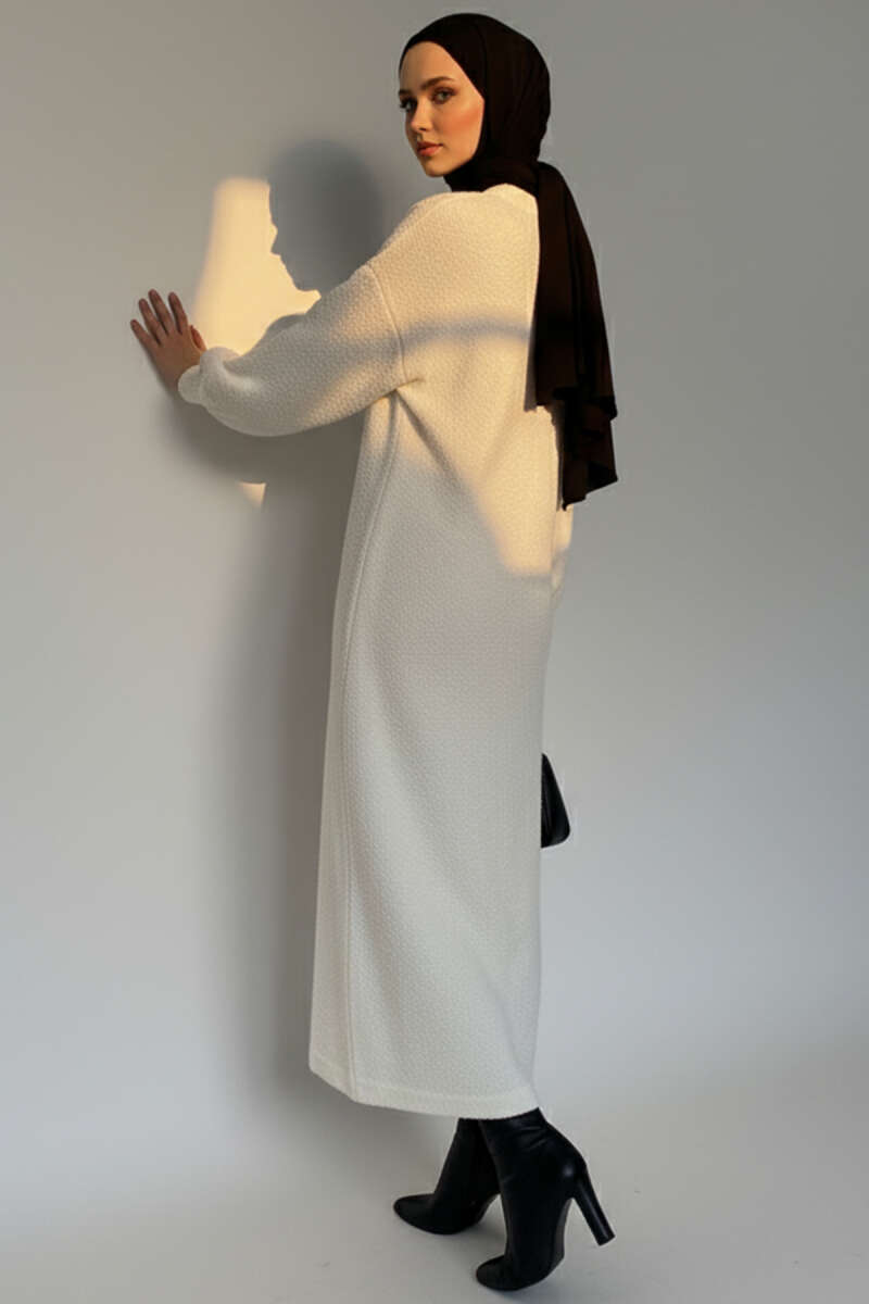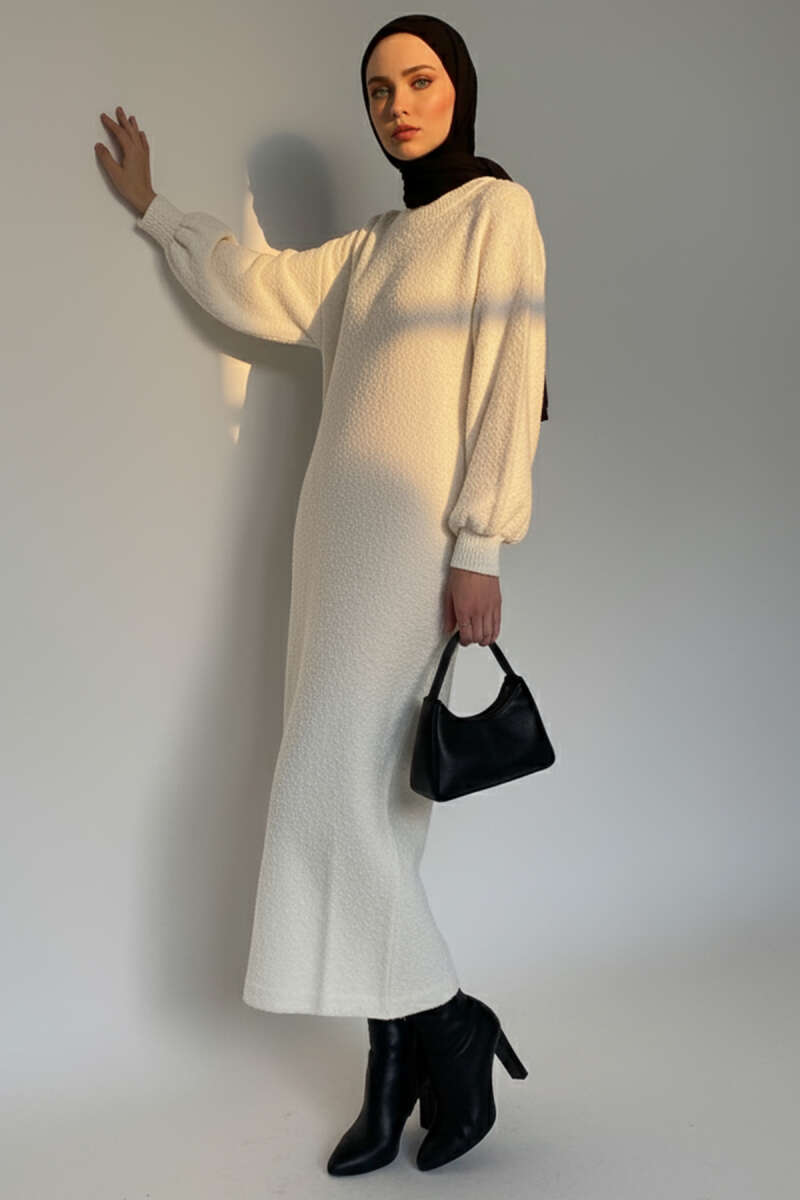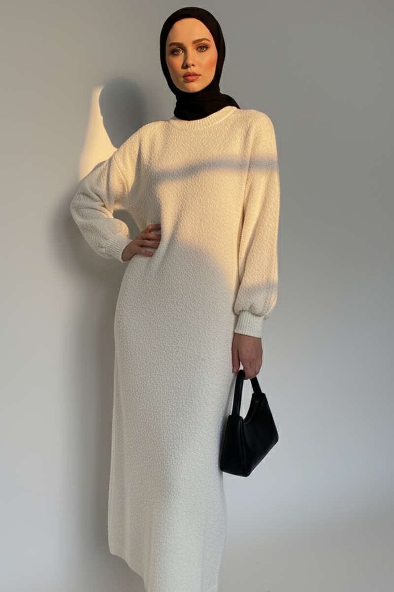 Baklava Desen Ajurlu Triko Elbise Vizon