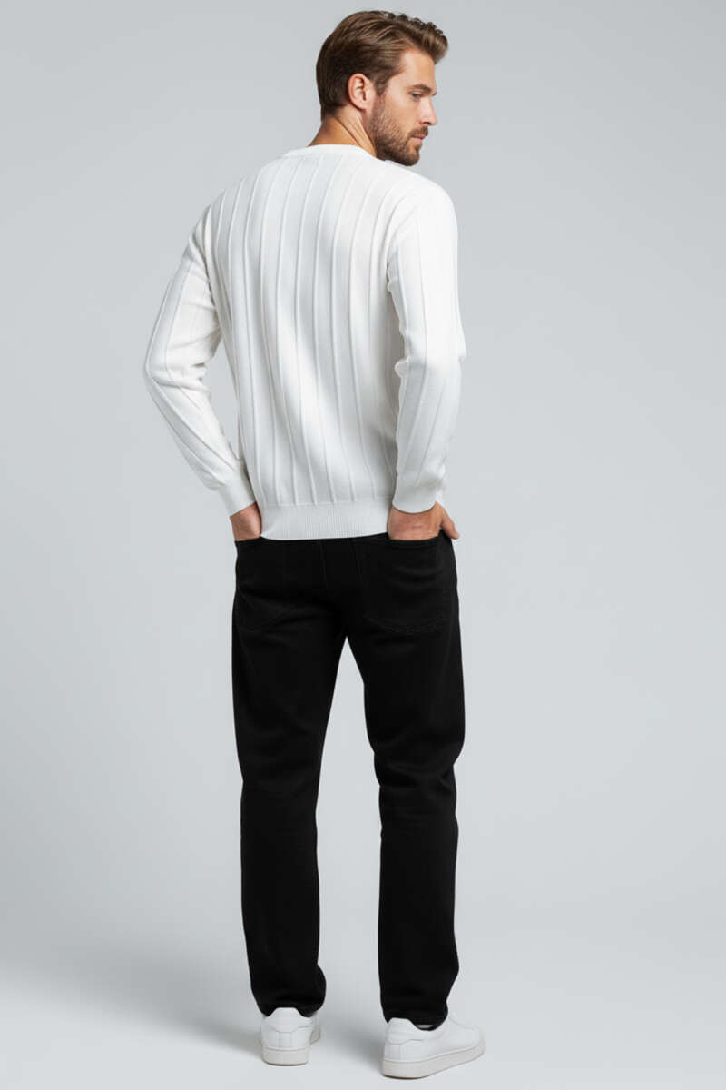 Polo Yaka Petek Örme Detaylı Triko Erkek Kazak Ekru