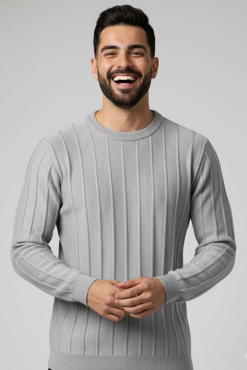 Pirinç Örgü Erkek Triko Kazak Gri