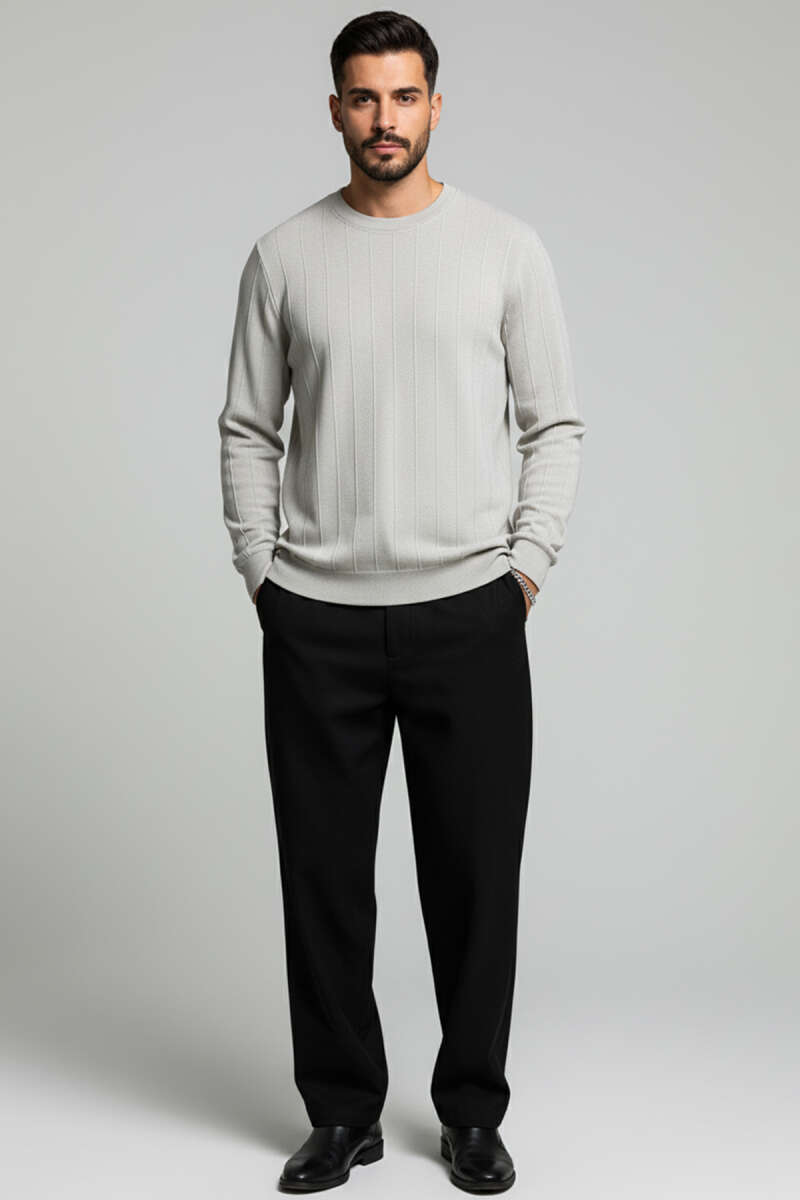 Bisiklet Yaka Dikişli Erkek Sweatshirt Gri
