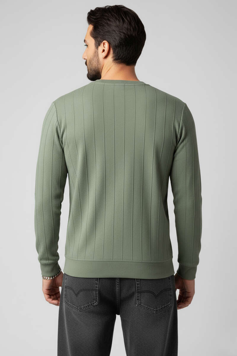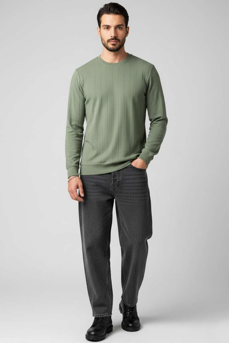 Bisiklet Yaka Dikişli Erkek Sweatshirt Haki