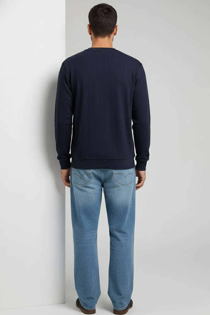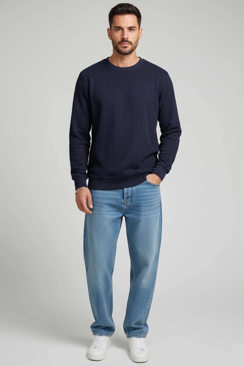 Bisiklet Yaka Dikişli Erkek Sweatshirt Lacivert