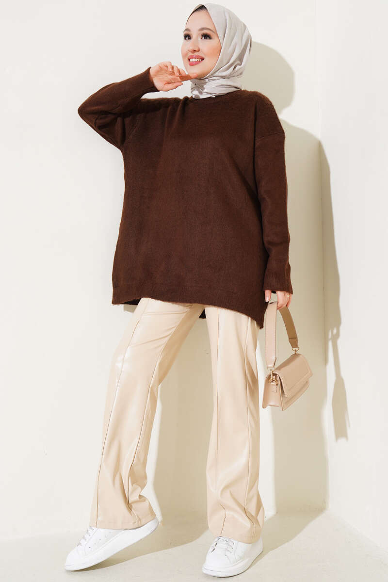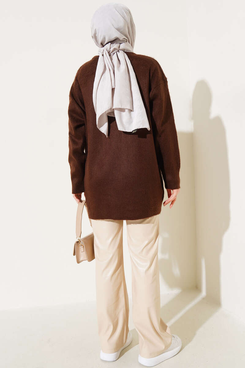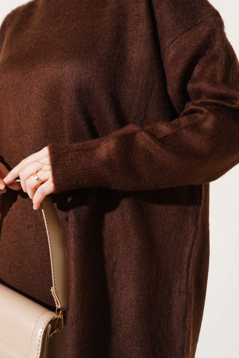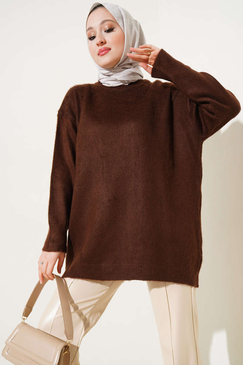 Bisiklet Yaka Düz Triko Tunik Kahve
