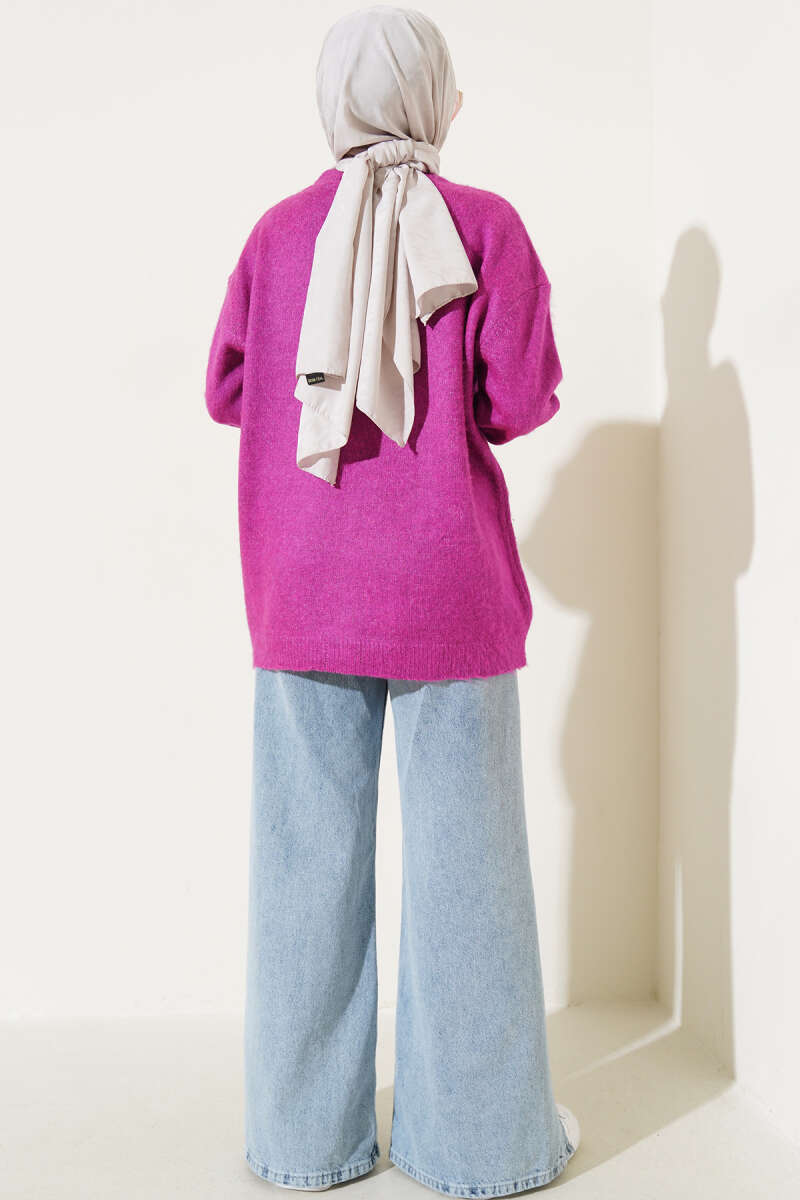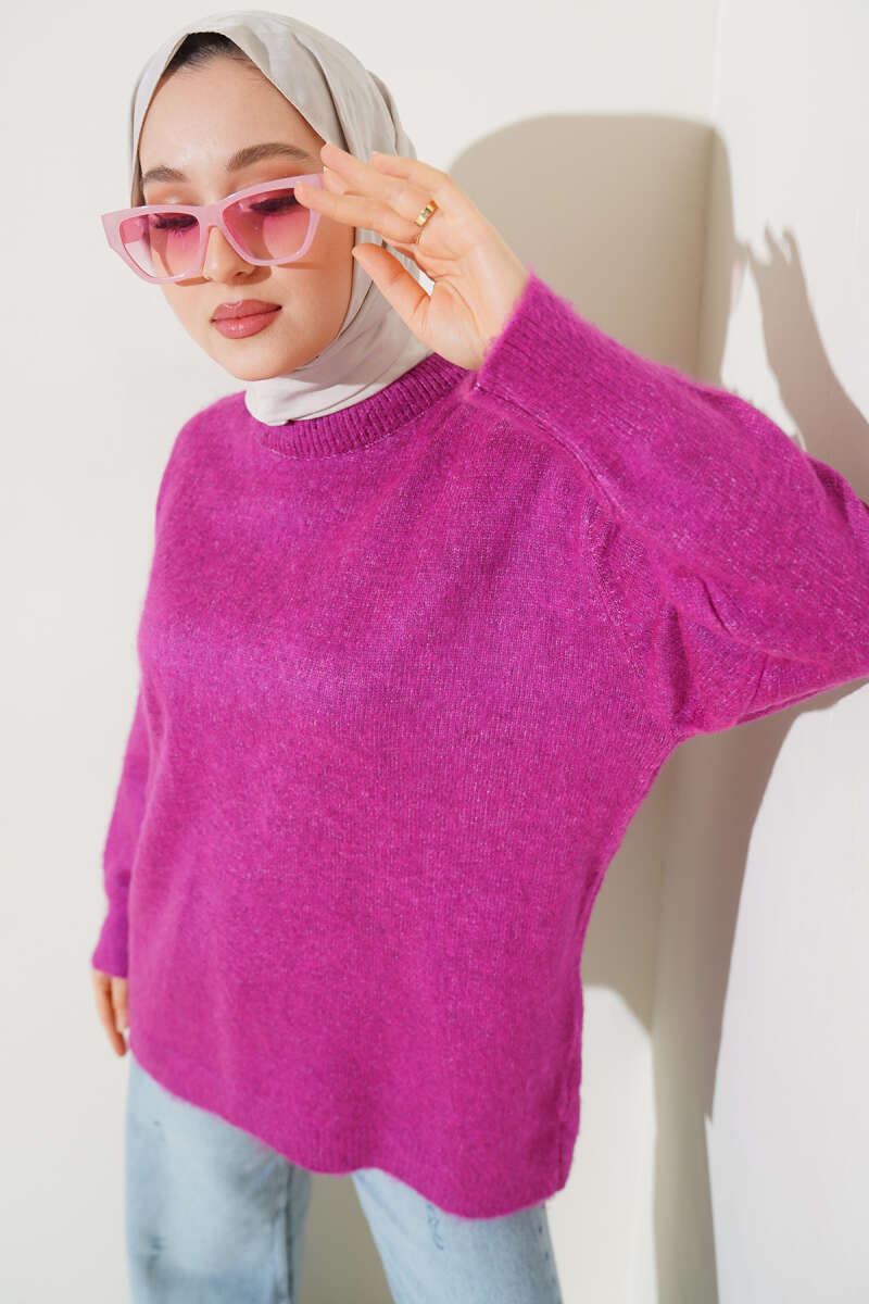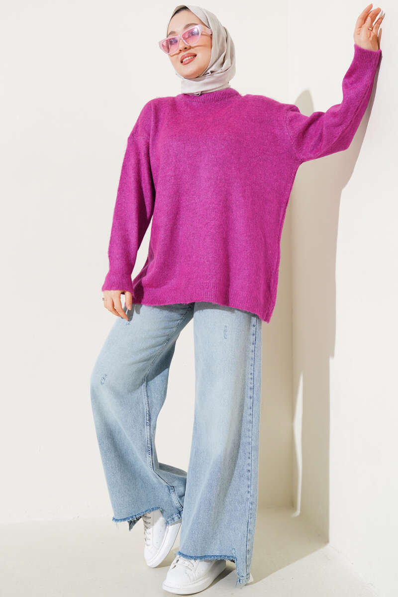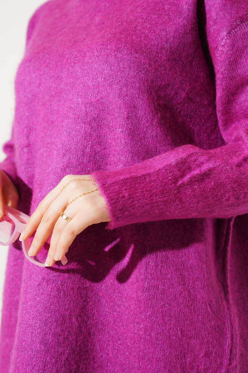 Bisiklet Yaka Düz Triko Tunik Mürdüm