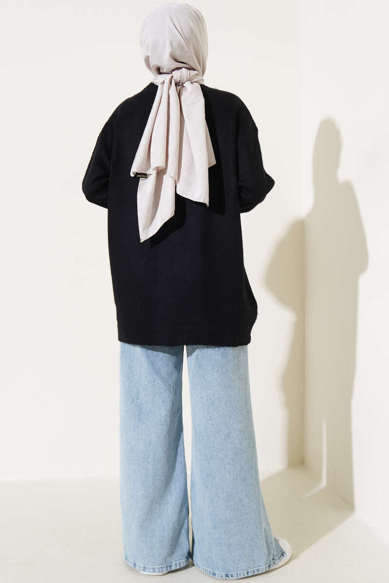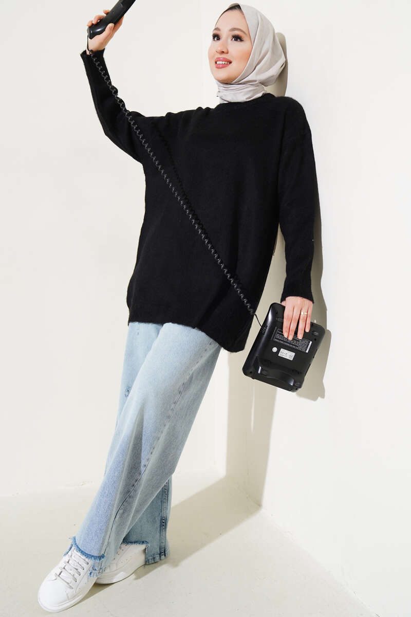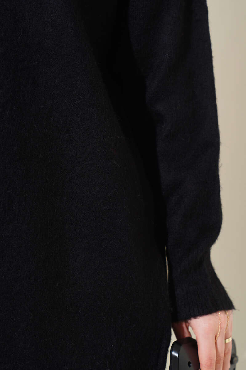 Bisiklet Yaka Düz Triko Tunik Siyah