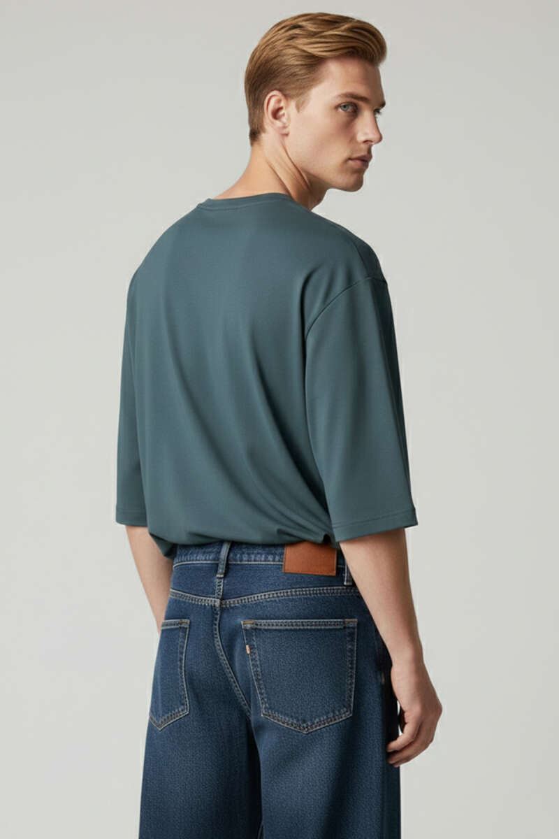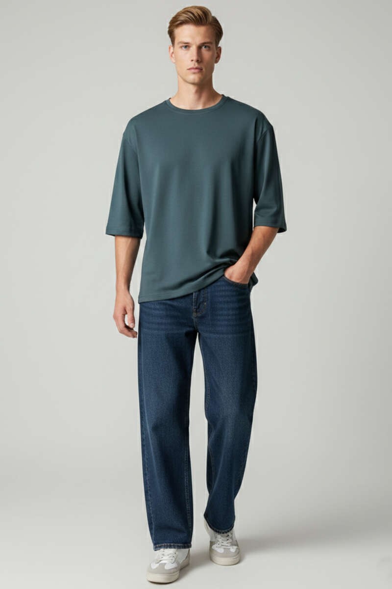 Kabartma Desenli Erkek T-shirt İndigo