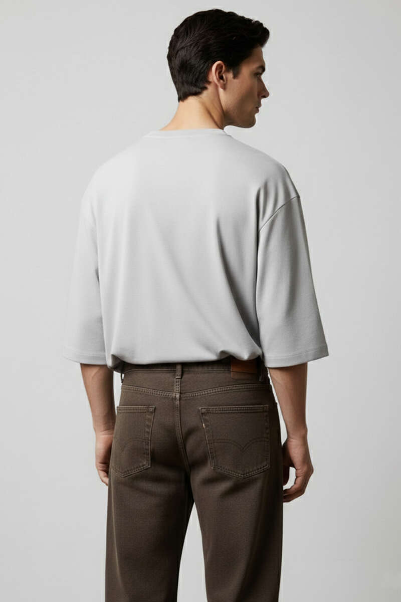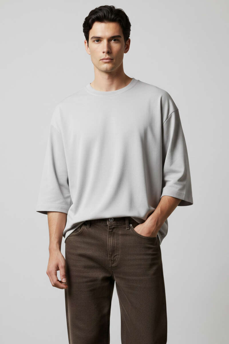 Bisiklet Yaka Fakir Kollu T-shirt Gri