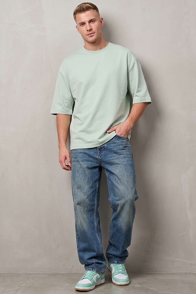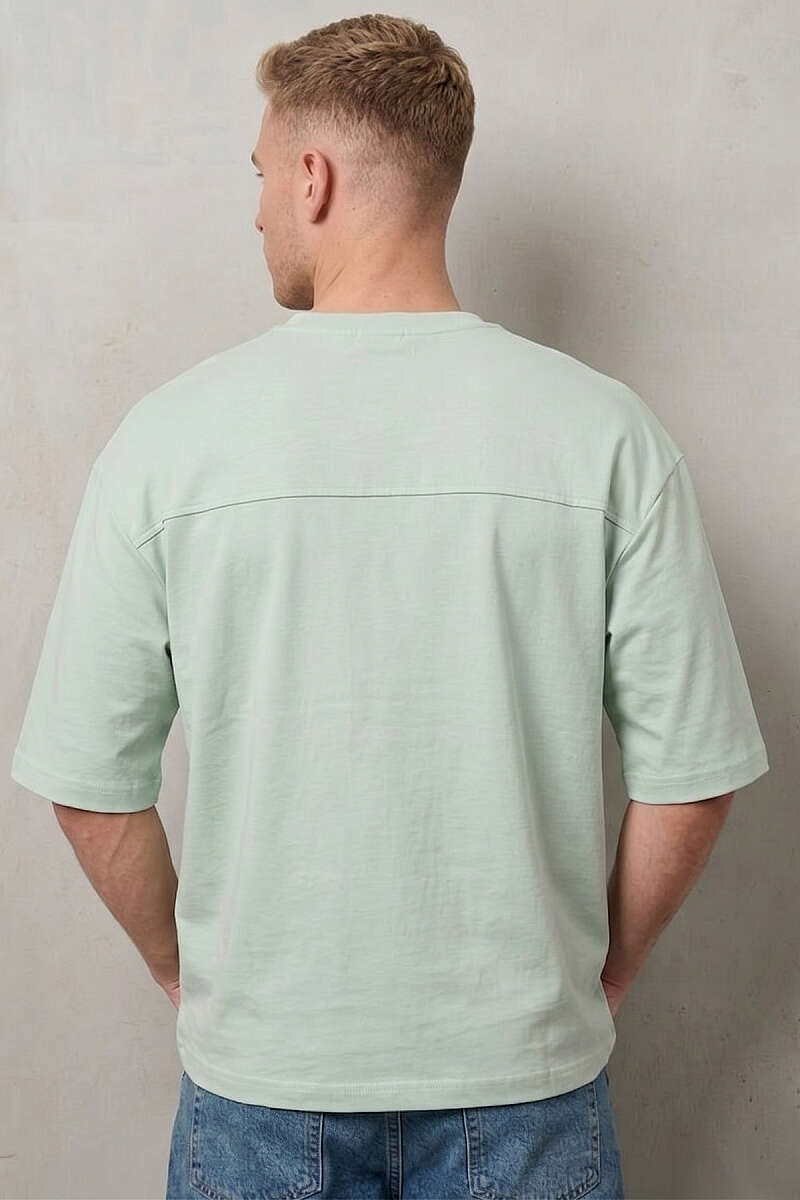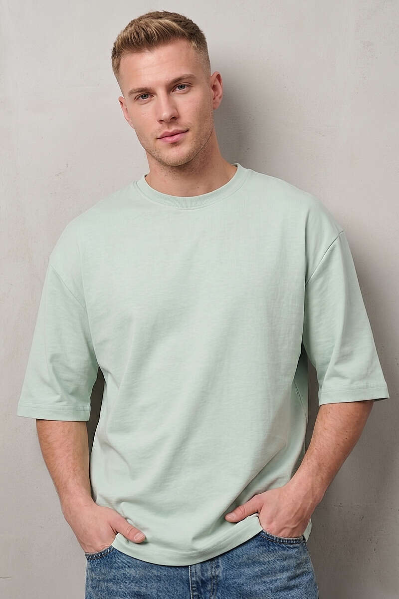 Bisiklet Yaka Fakir Kollu T-shirt Su Yeşili
