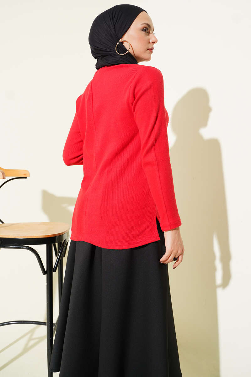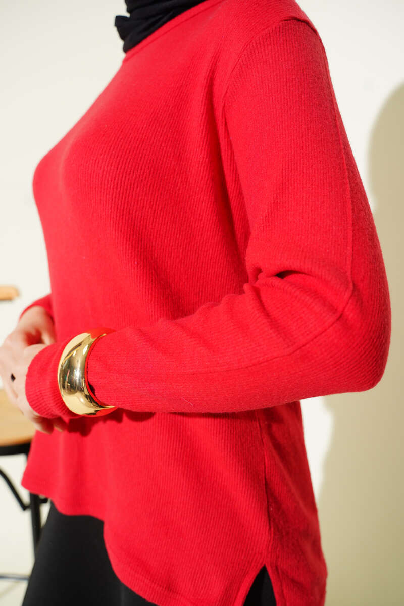 Bisiklet Yaka Fitilli Bluz Gül Kurusu
