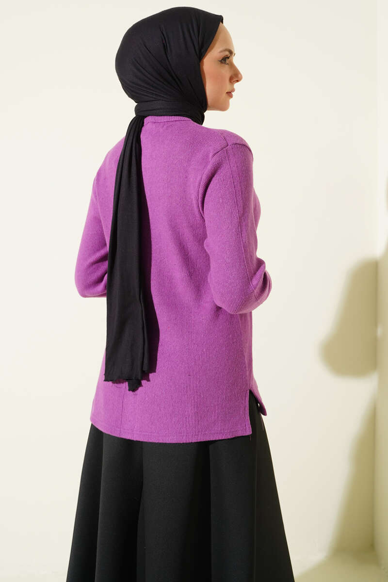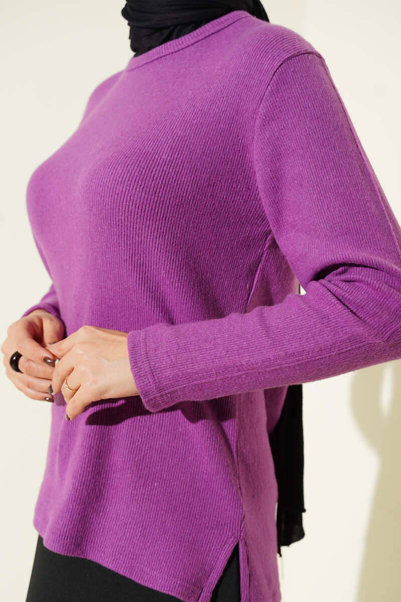Bisiklet Yaka Fitilli Bluz Gül Kurusu