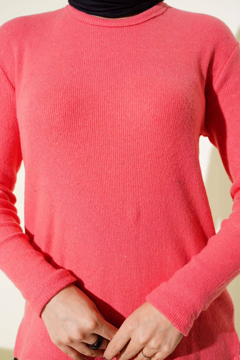 Bisiklet Yaka Fitilli Bluz Gül Kurusu