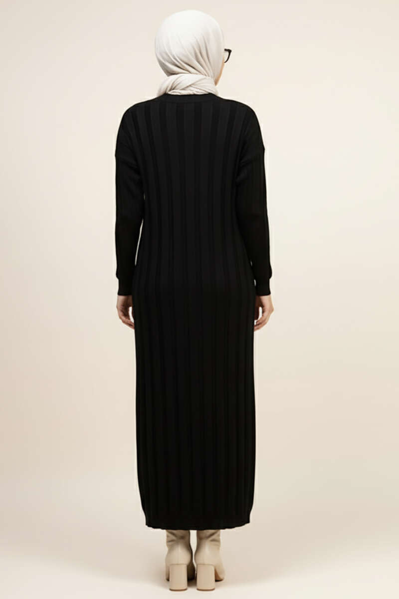 Kıvrım Örgülü Triko Elbise Siyah
