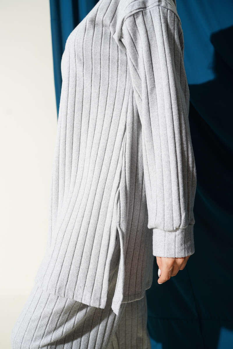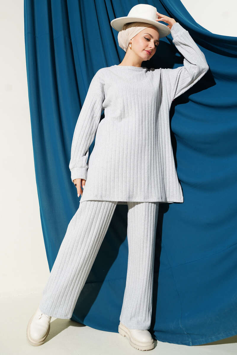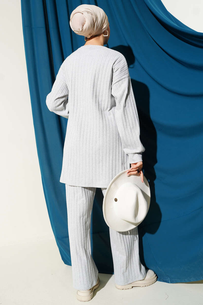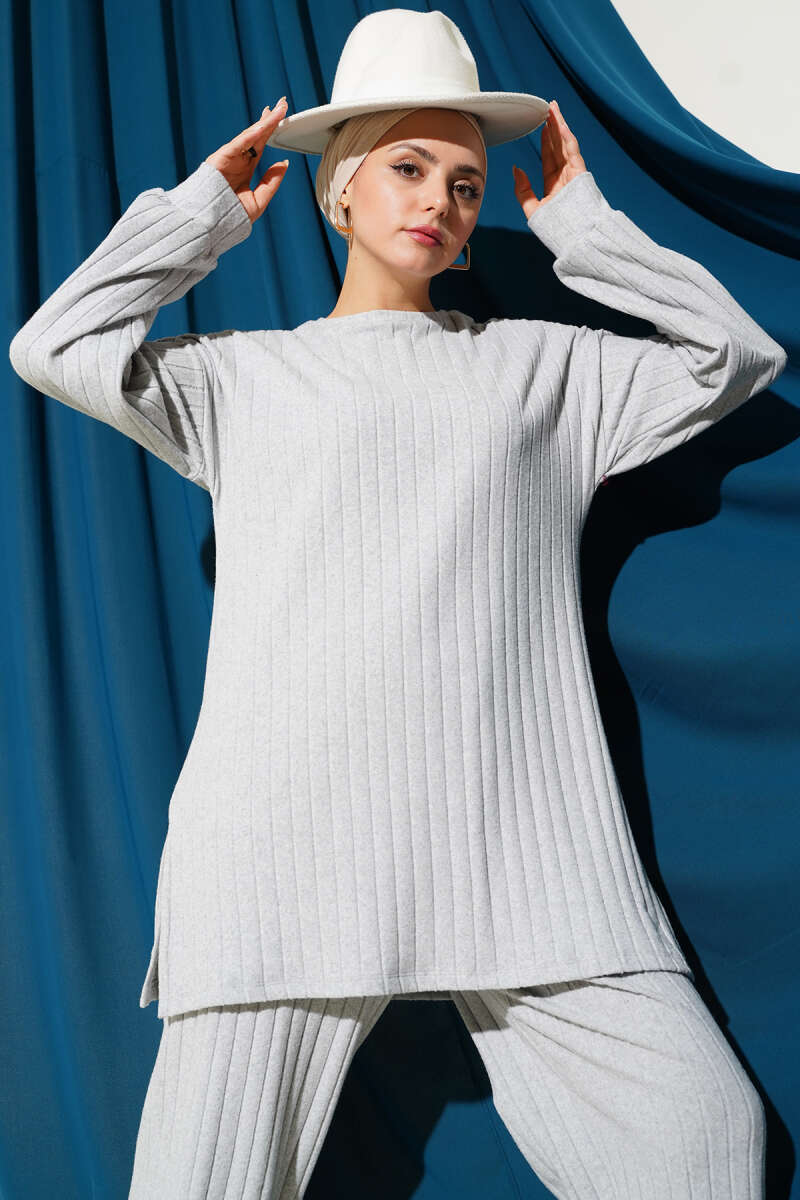 Bisiklet Yaka Fitilli Triko İkili Takım Latte