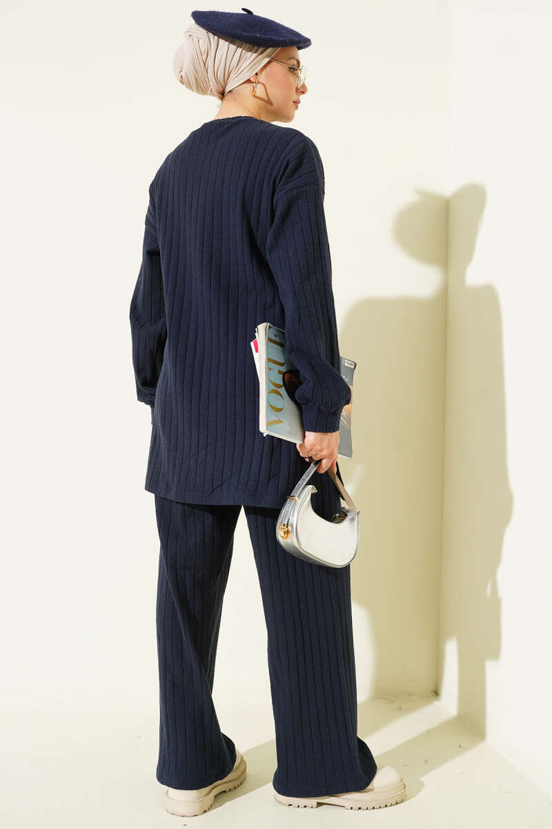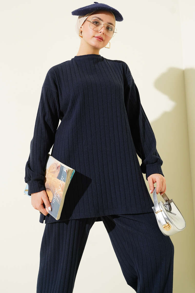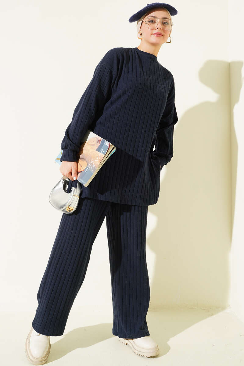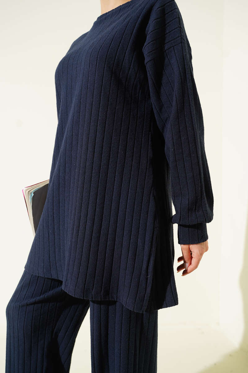 Bisiklet Yaka Fitilli Triko İkili Takım Siyah