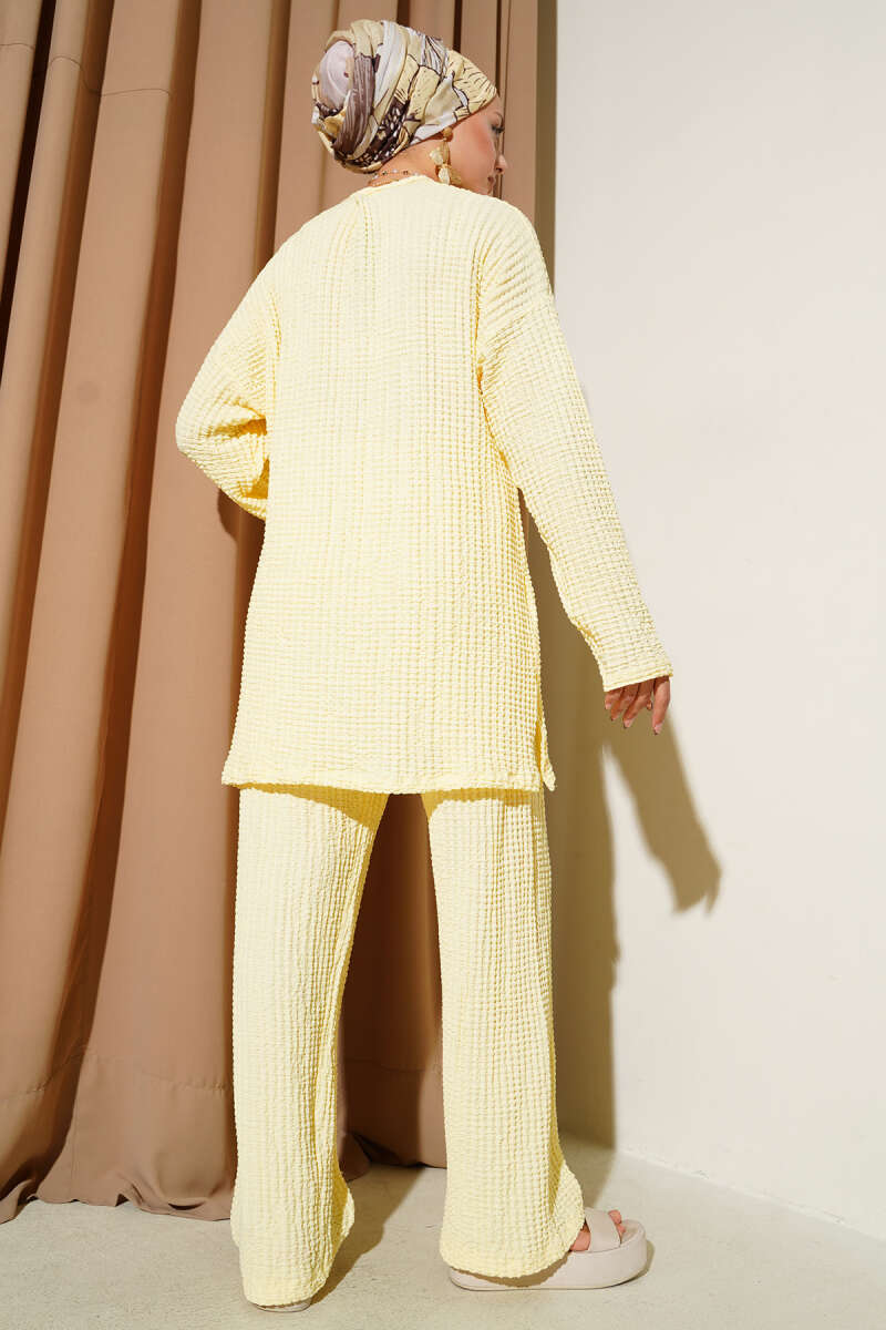 Bisiklet Yaka Gofre İkili Takım Sarı