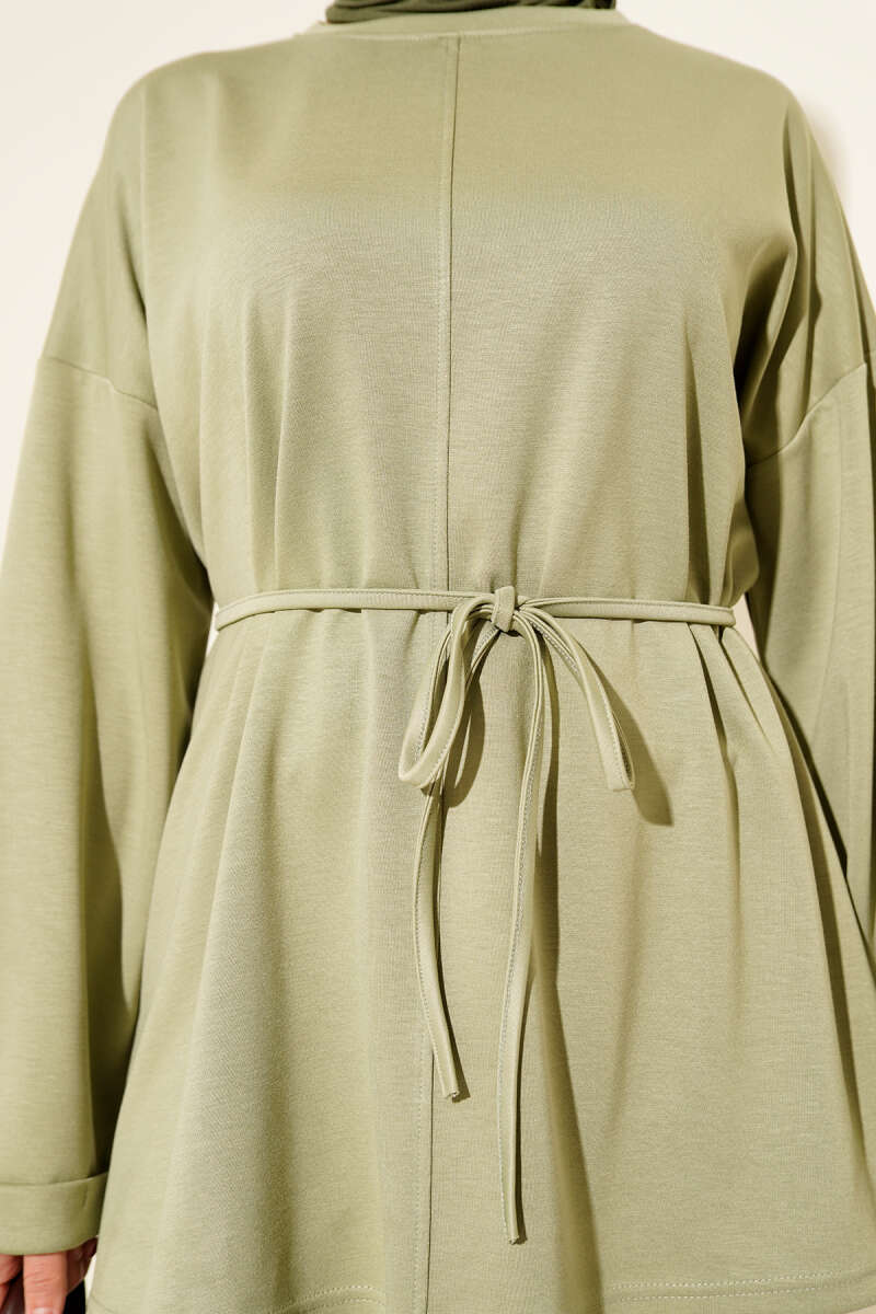 Yaka Fırfırlı Yan İp Bağlamalı Kimono Çağla Yeşili