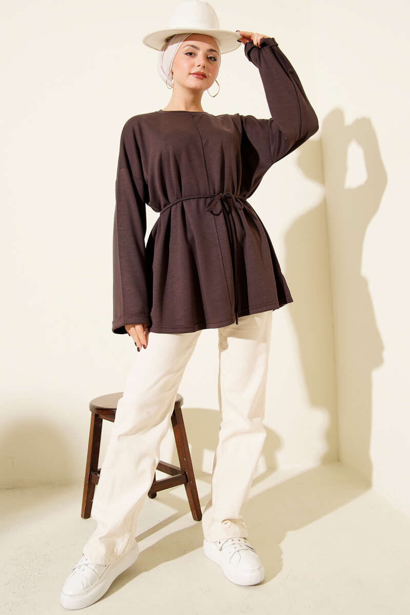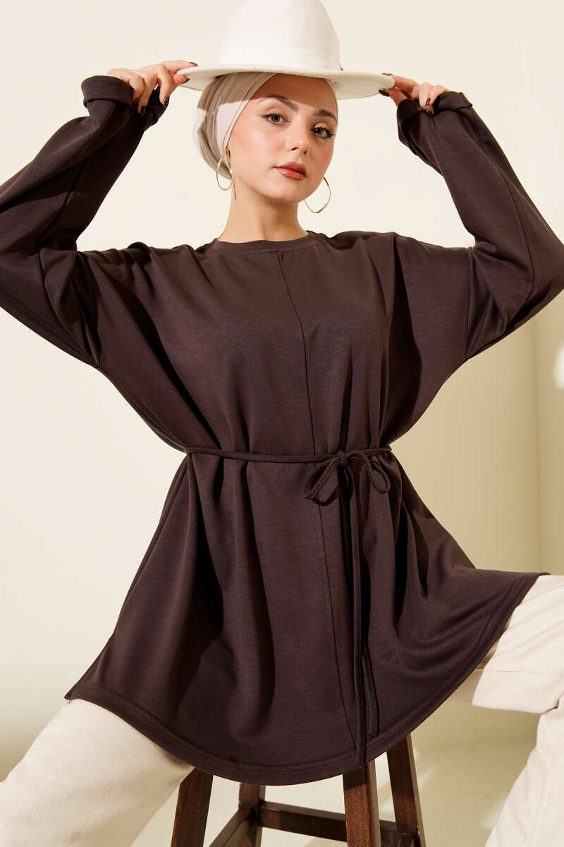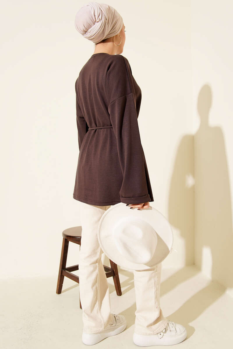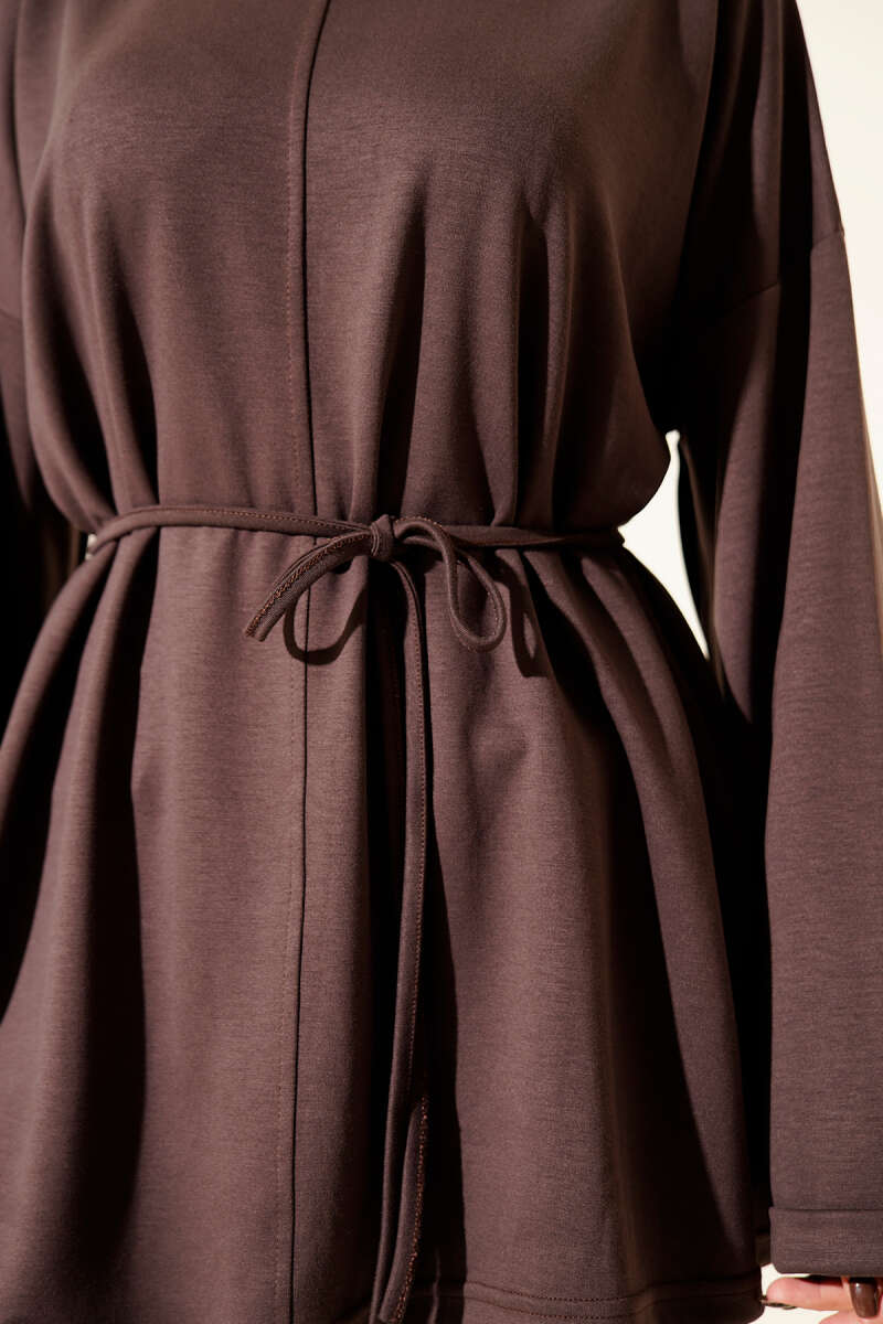 Bilek İpli Fitilli Kaşe Tunik Kahve