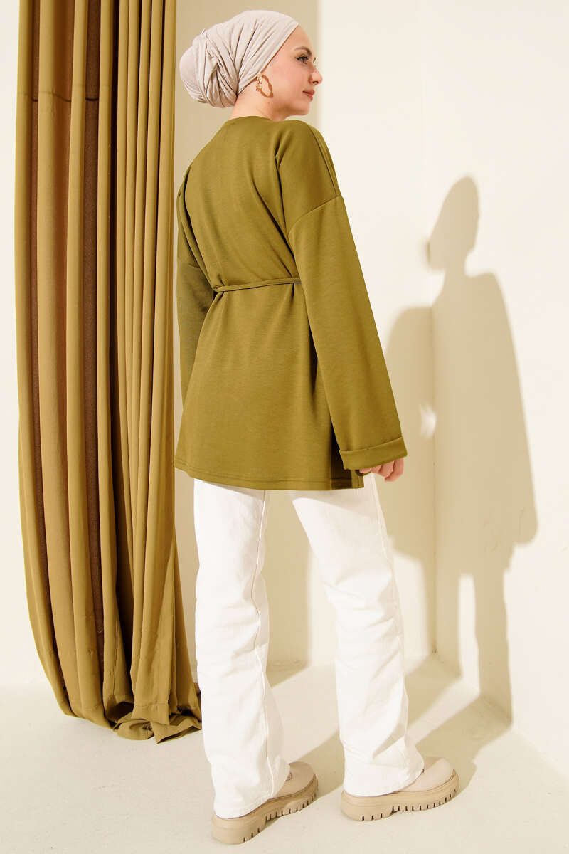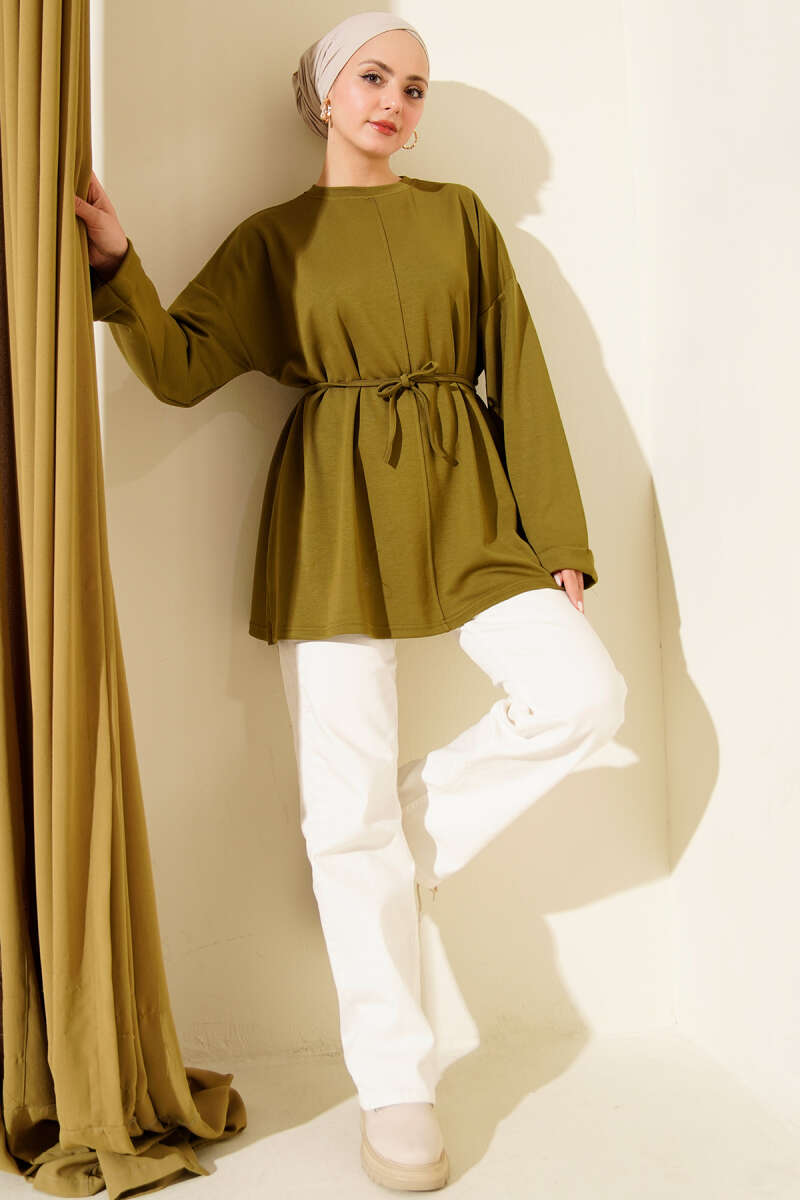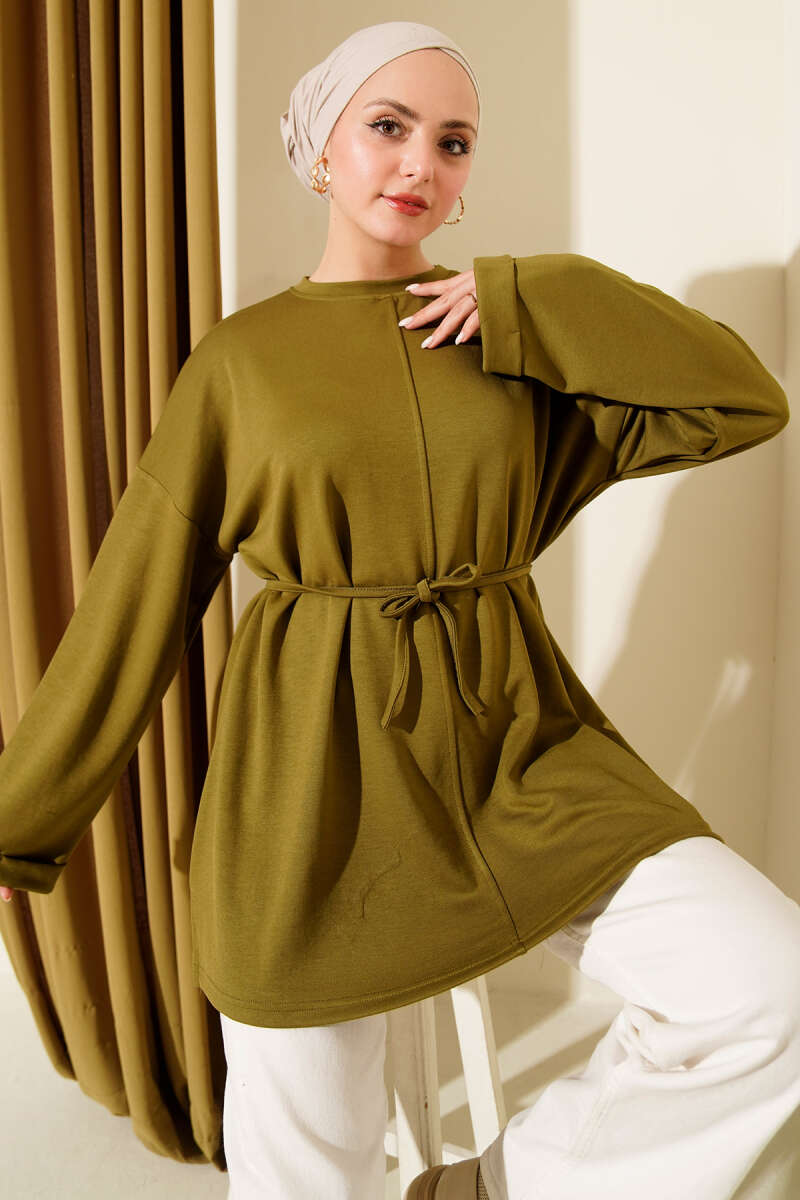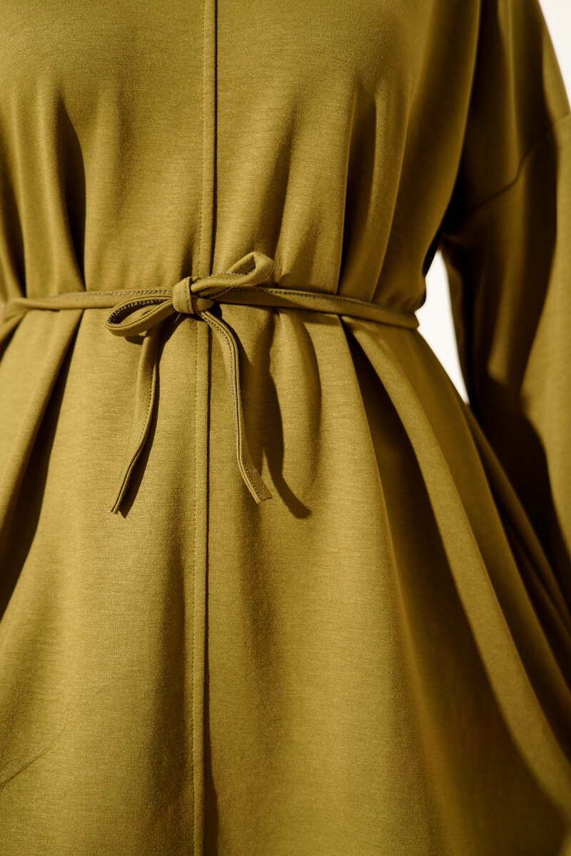 Bisiklet Yaka Bel Tünel Detaylı Elbise Haki