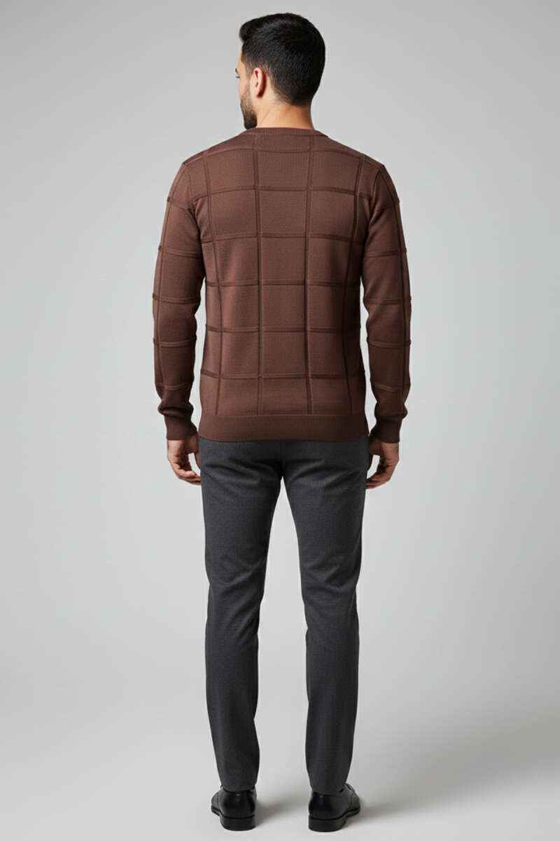 Bisiklet Yaka Kare Desenli Erkek Triko Kazak Siyah