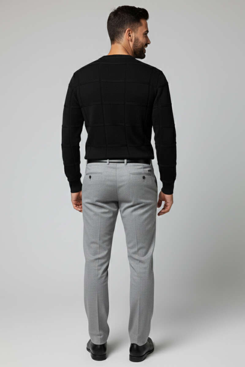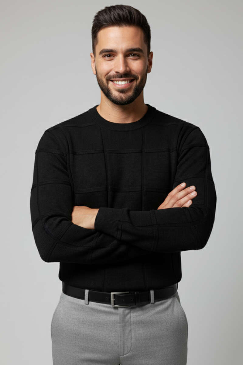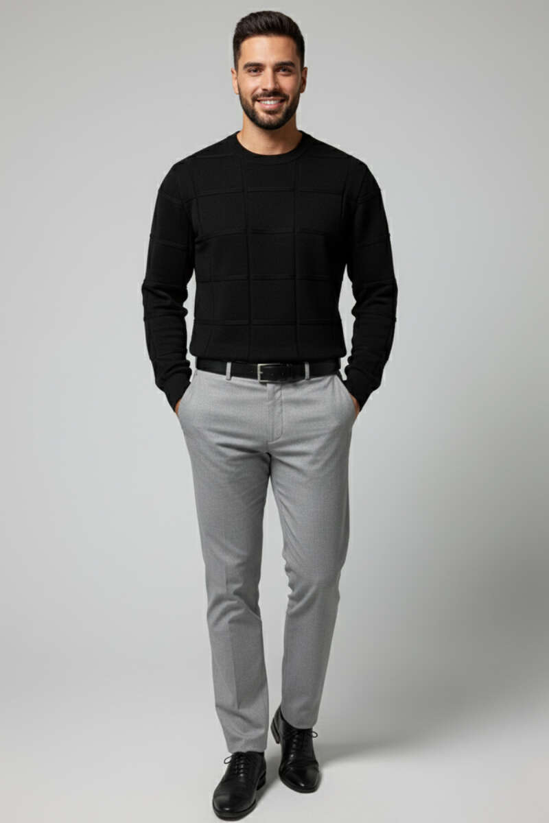Bisiklet Yaka Kare Desenli Erkek Triko Kazak Lacivert