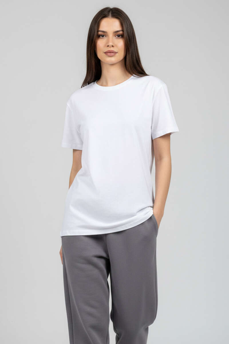 Bisiklet Yaka Kısa Kollu T-shirt Beyaz