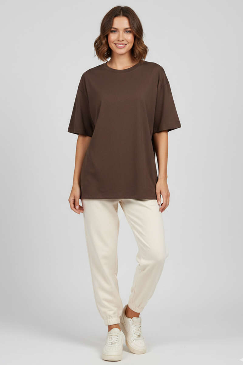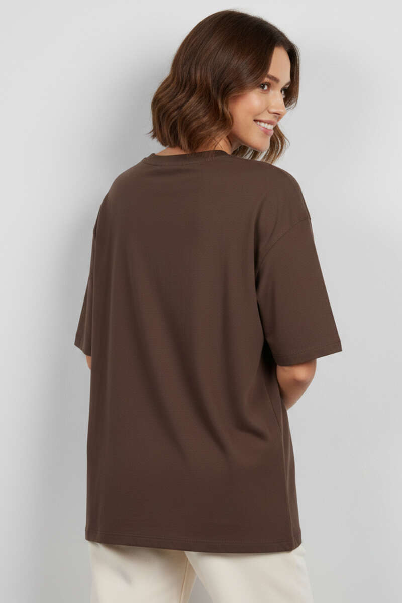 Bisiklet Yaka Kısa Kollu T-shirt Kahve