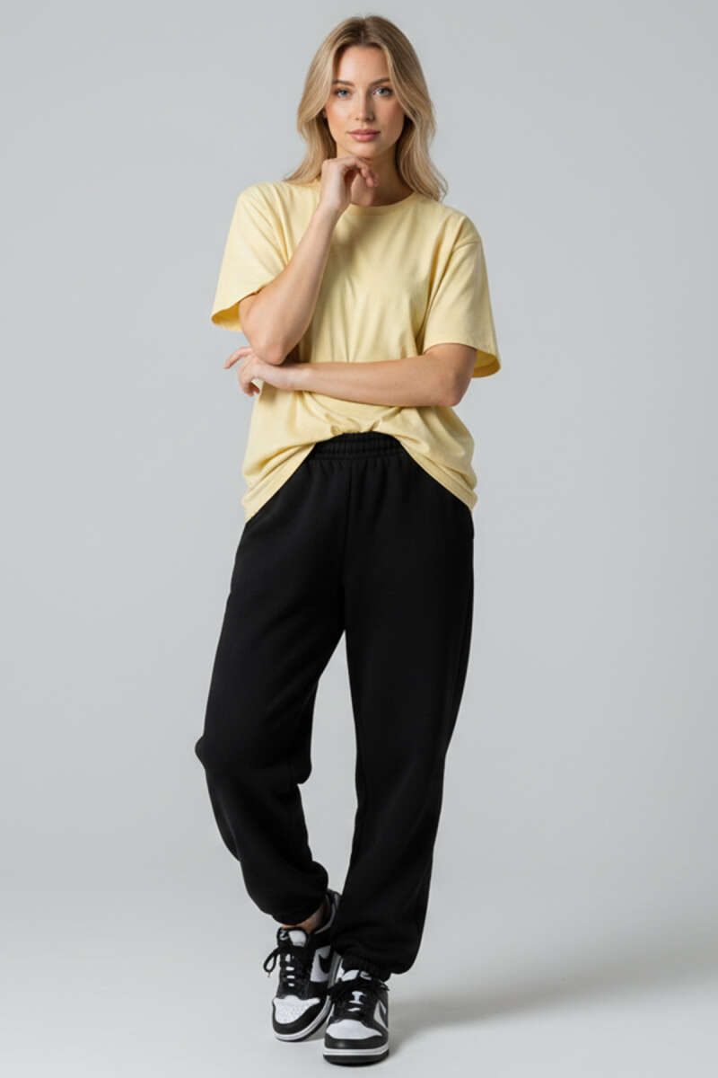 Bisiklet Yaka Kısa Kollu T-shirt Sarı