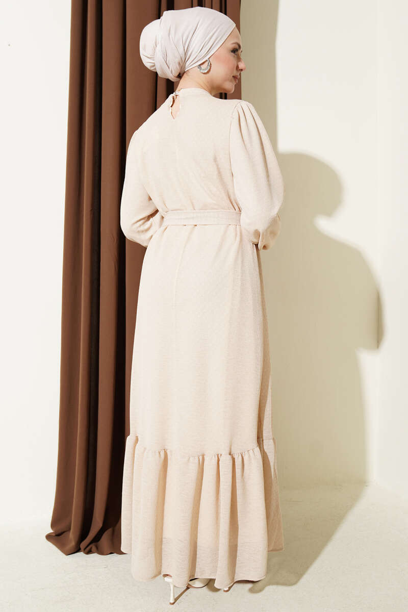 Bisiklet Yaka Kol Lastikli Elbise Bej