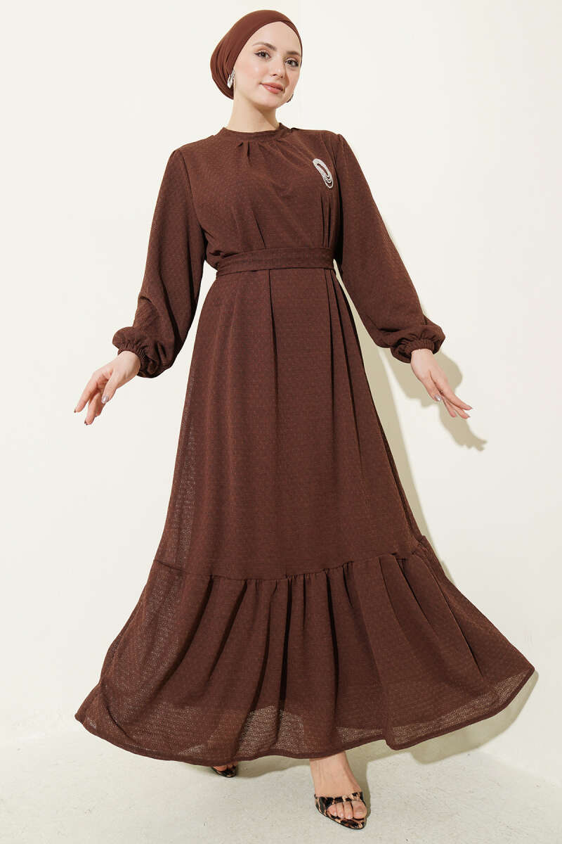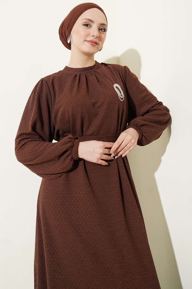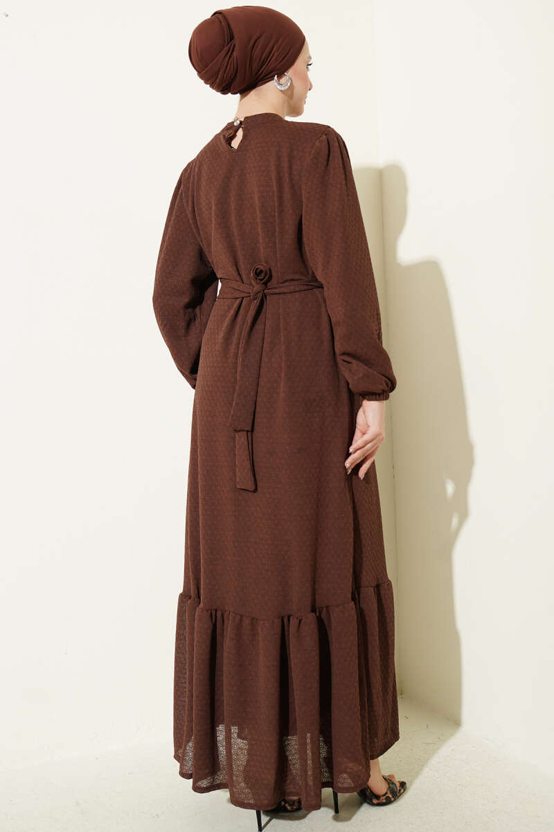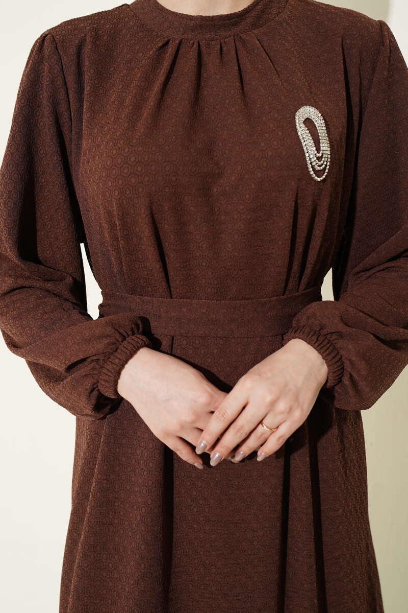 Bisiklet Yaka Kol Lastikli Elbise Kahve