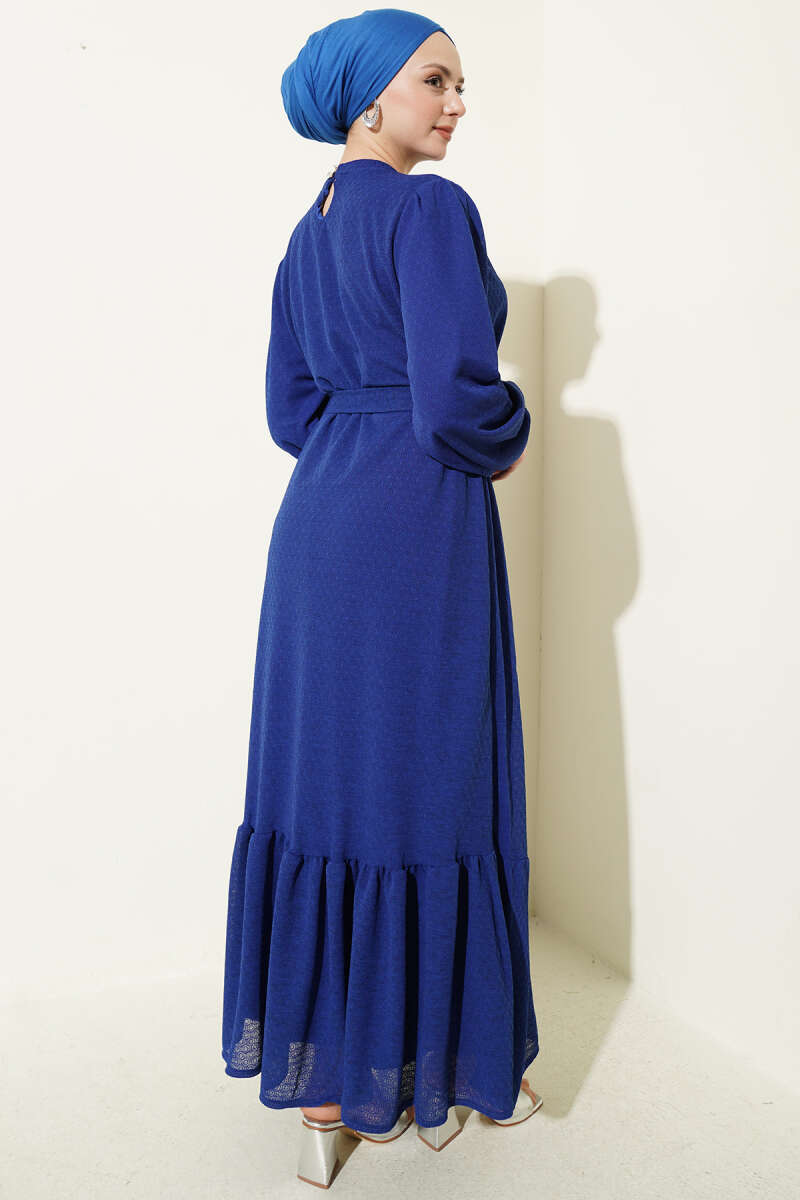 Bisiklet Yaka Kol Lastikli Elbise Saks