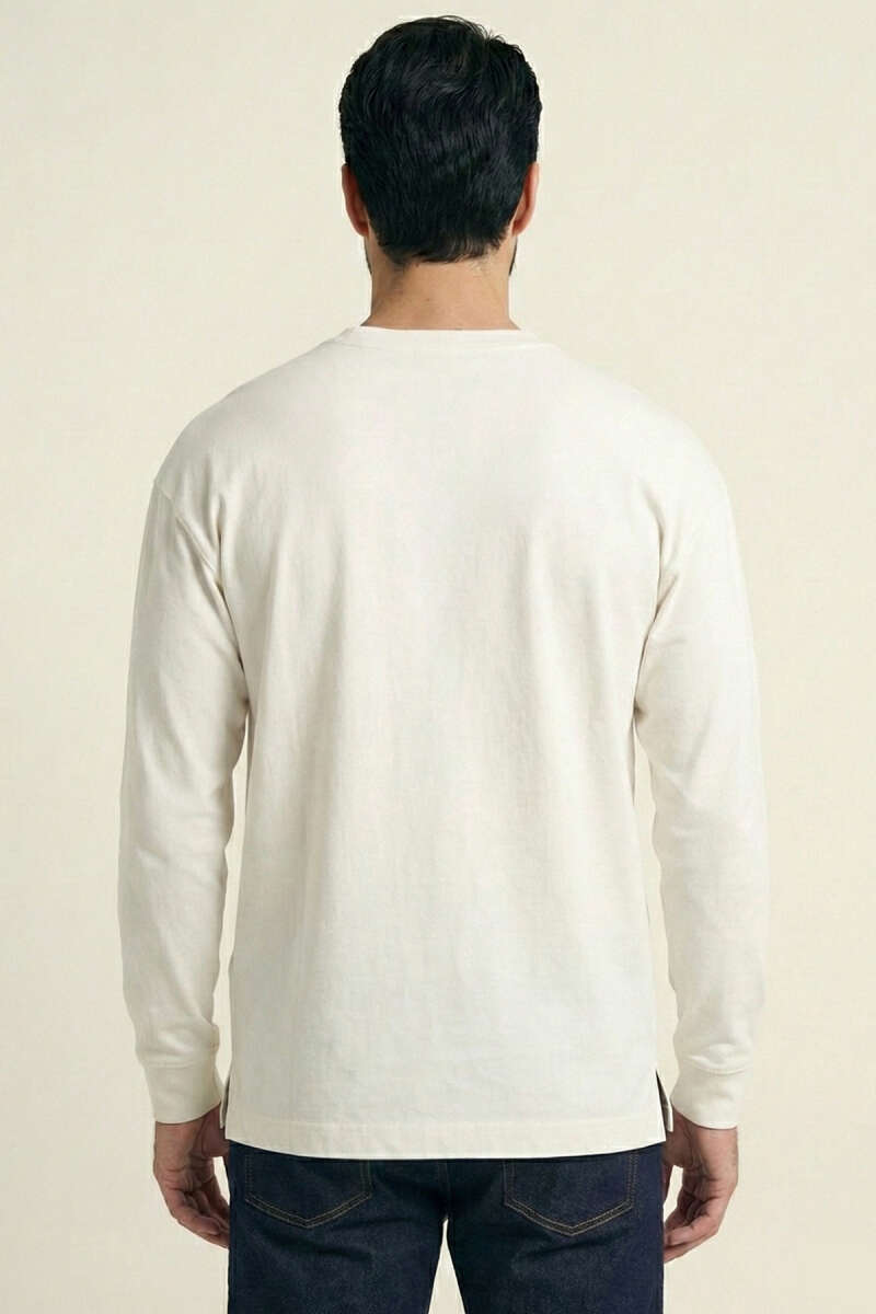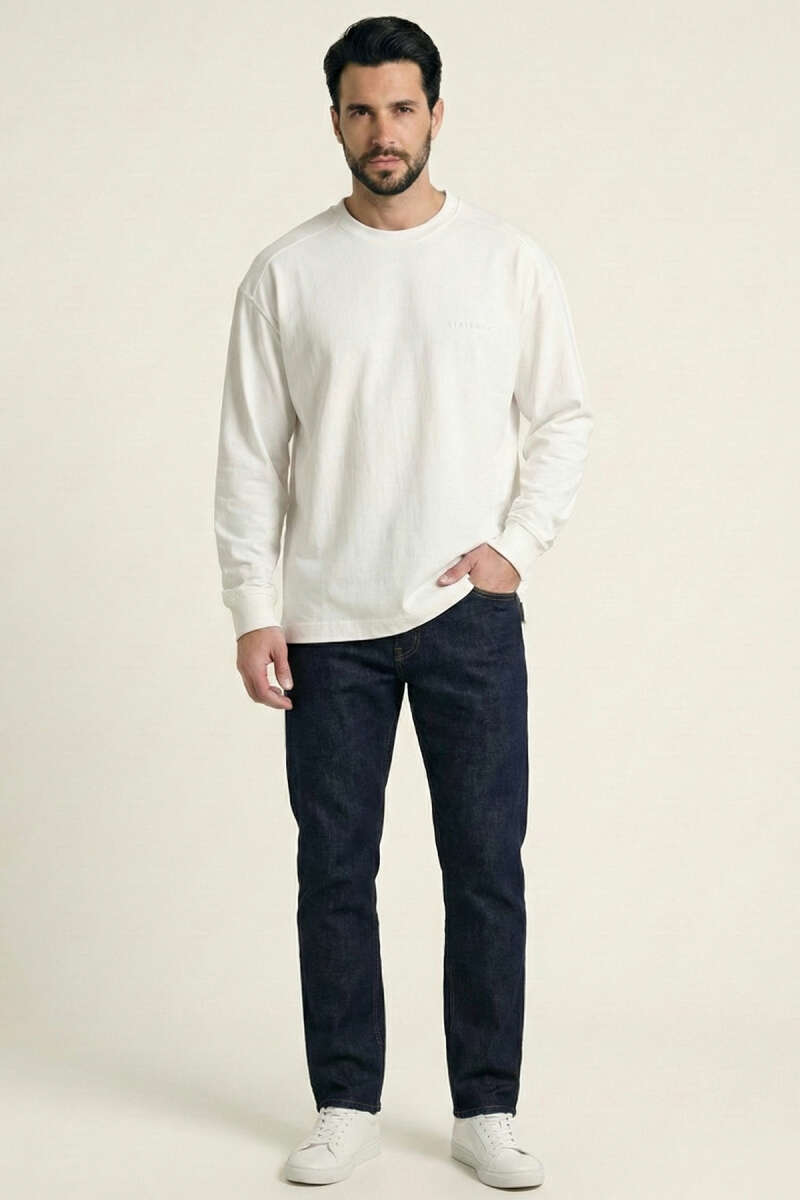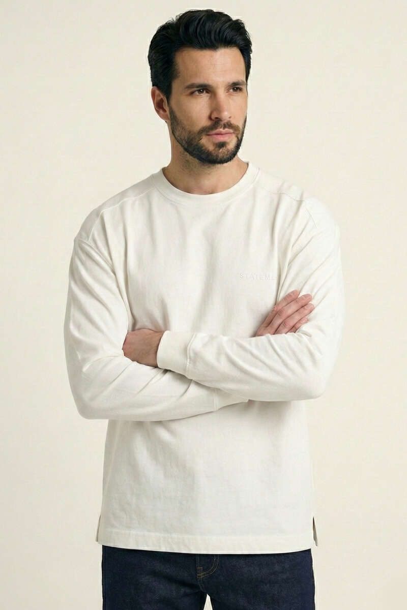 Yaka Düğmeli Biyeli Erkek Sweatshirt Beyaz