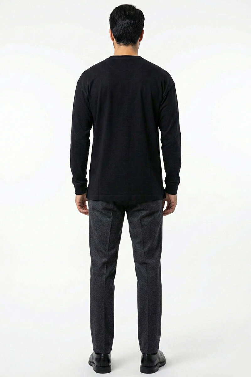 Yaka Düğmeli Biyeli Erkek Sweatshirt Siyah