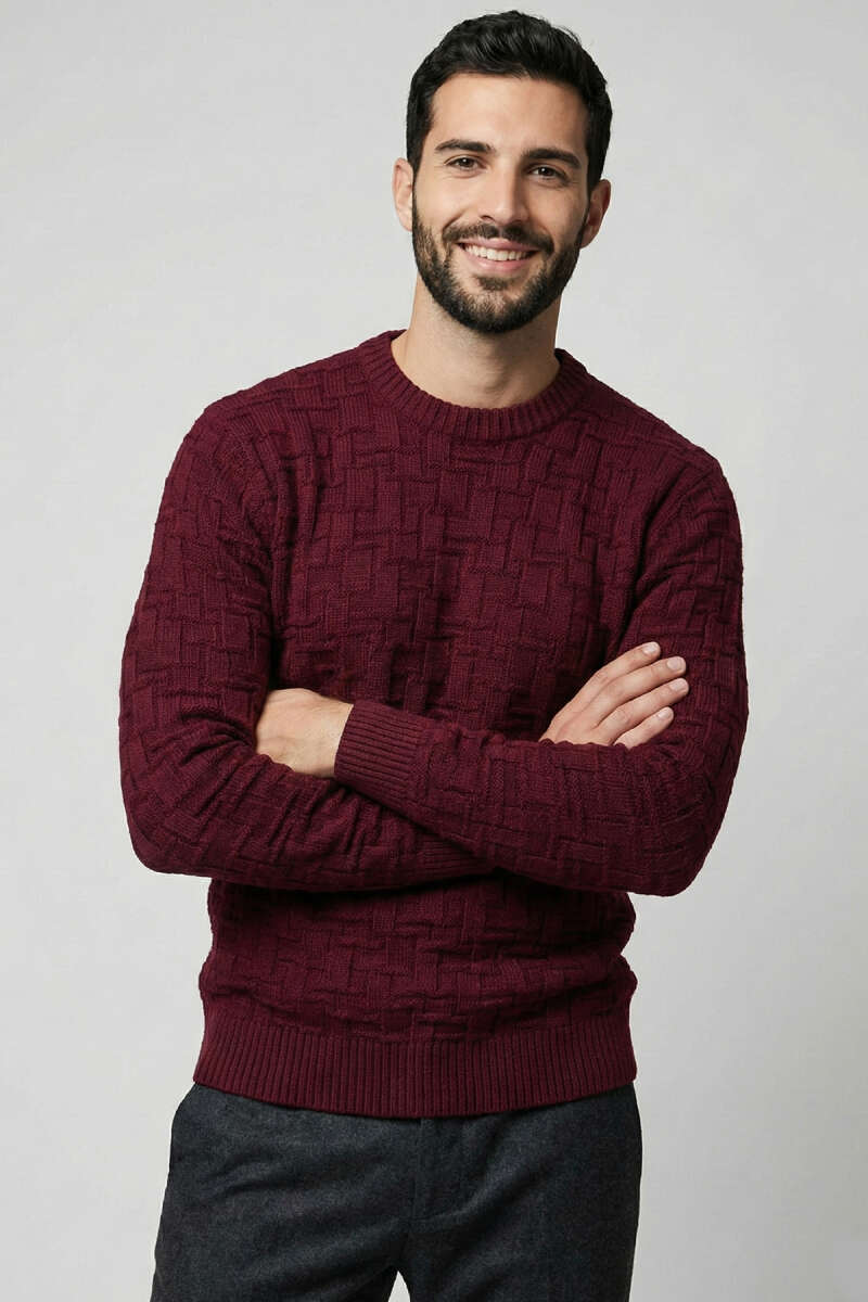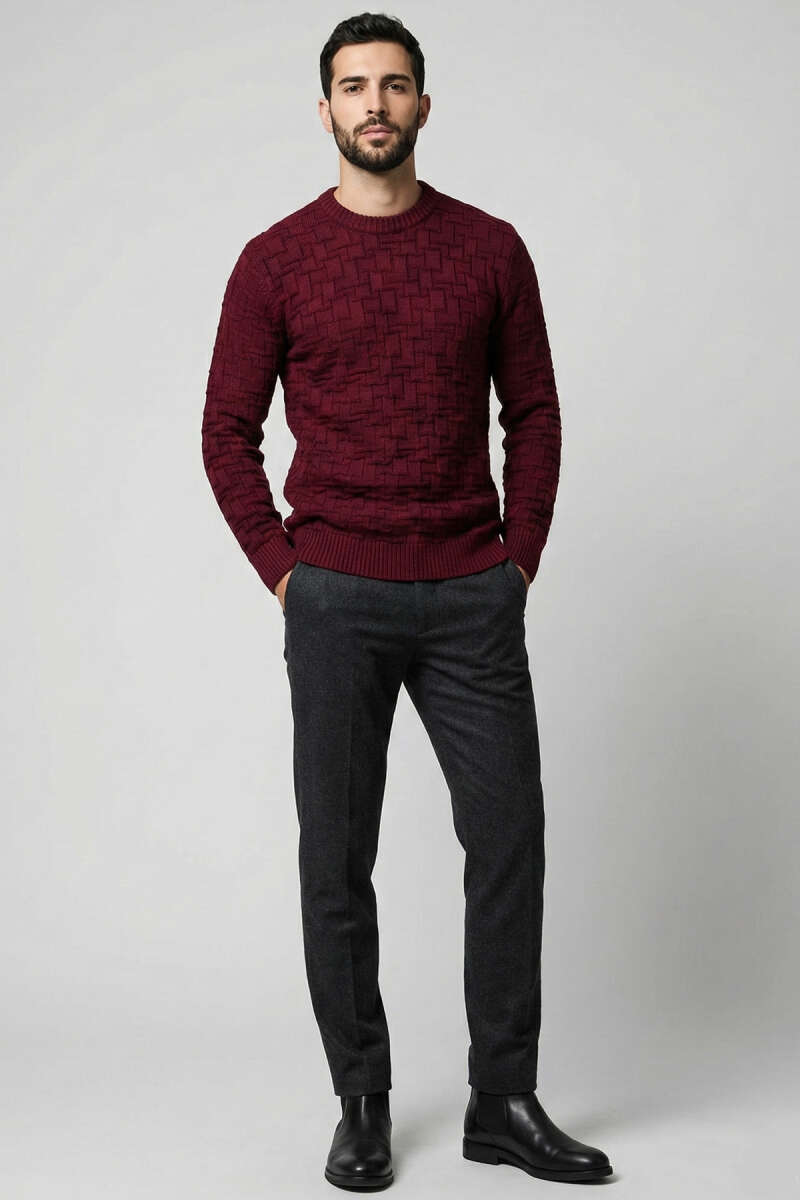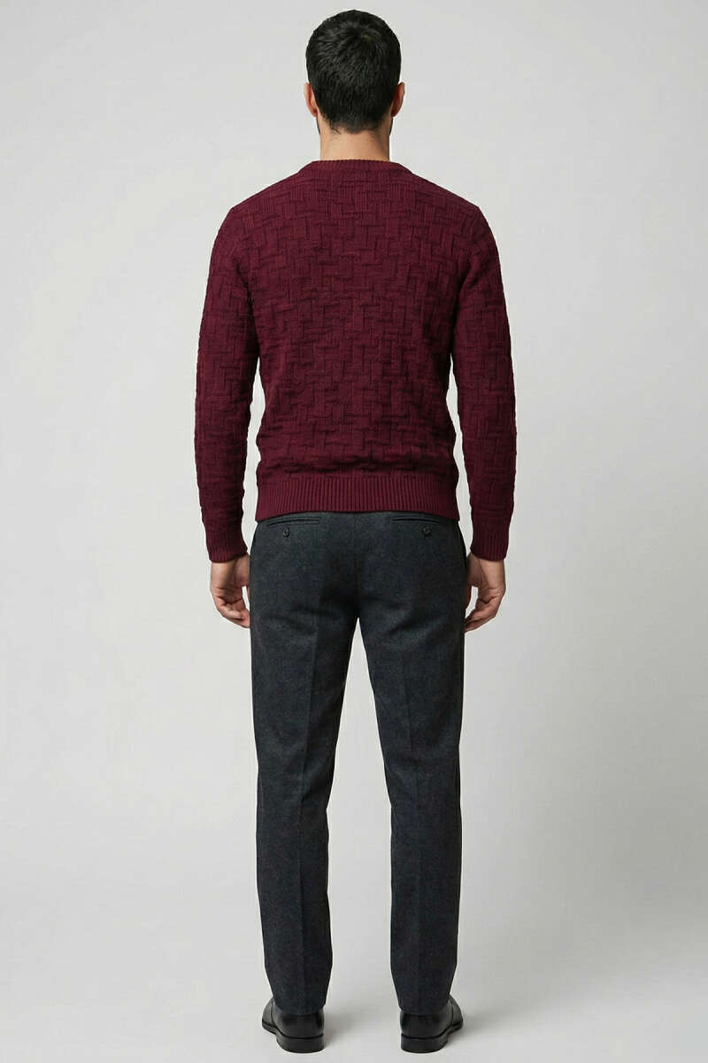 Yıldız Desen Triko Örme Erkek Kazak Kemik