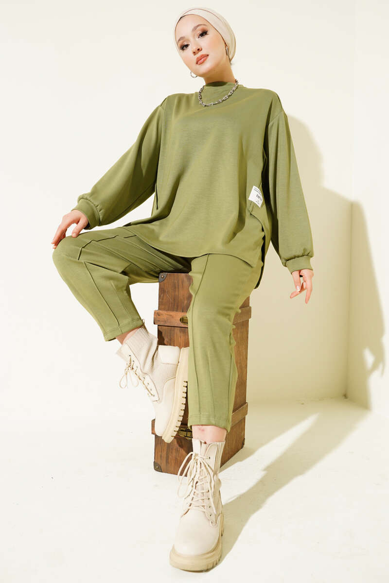 Bisiklet Yaka Oval Detaylı İkili Takım Mürdüm