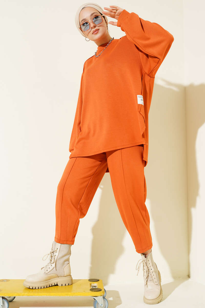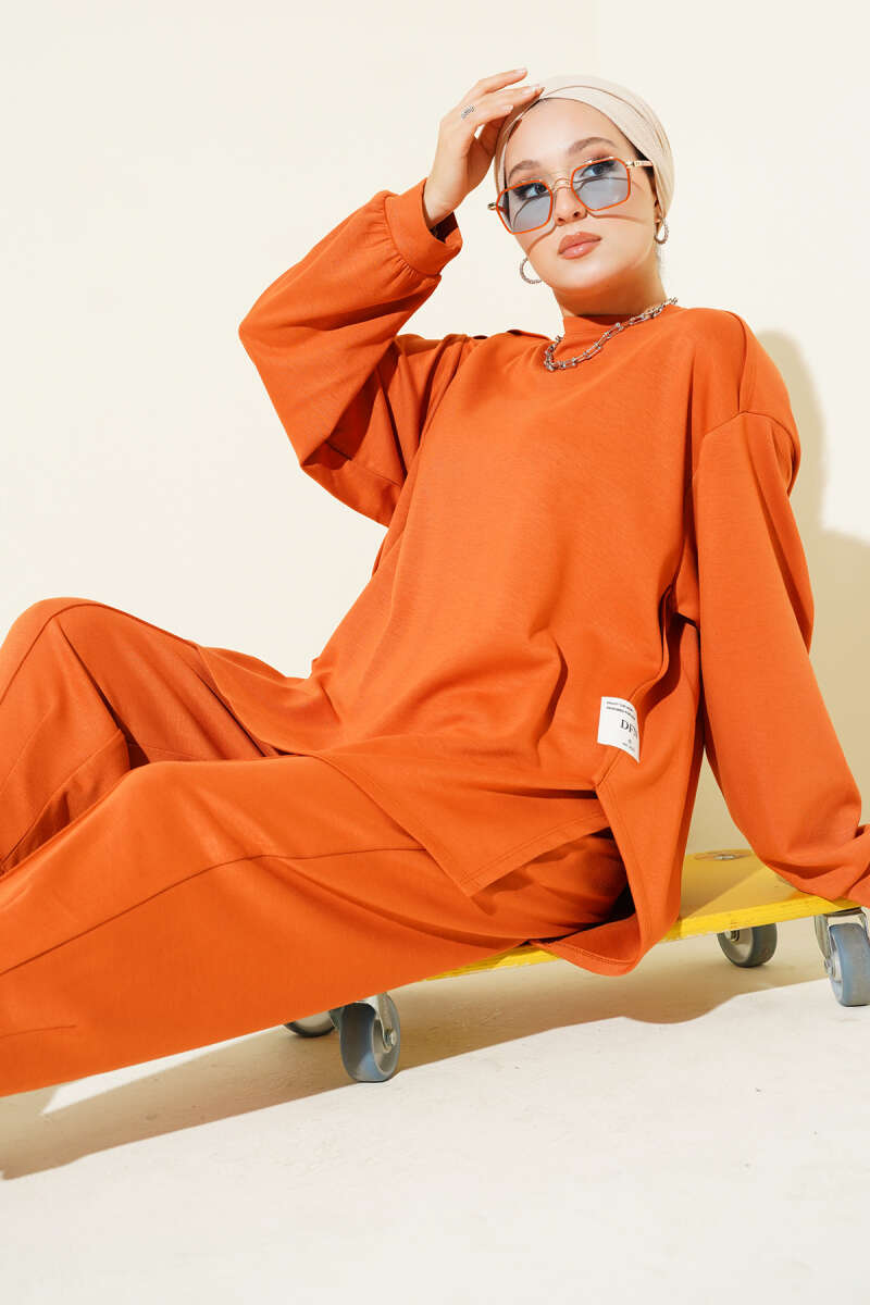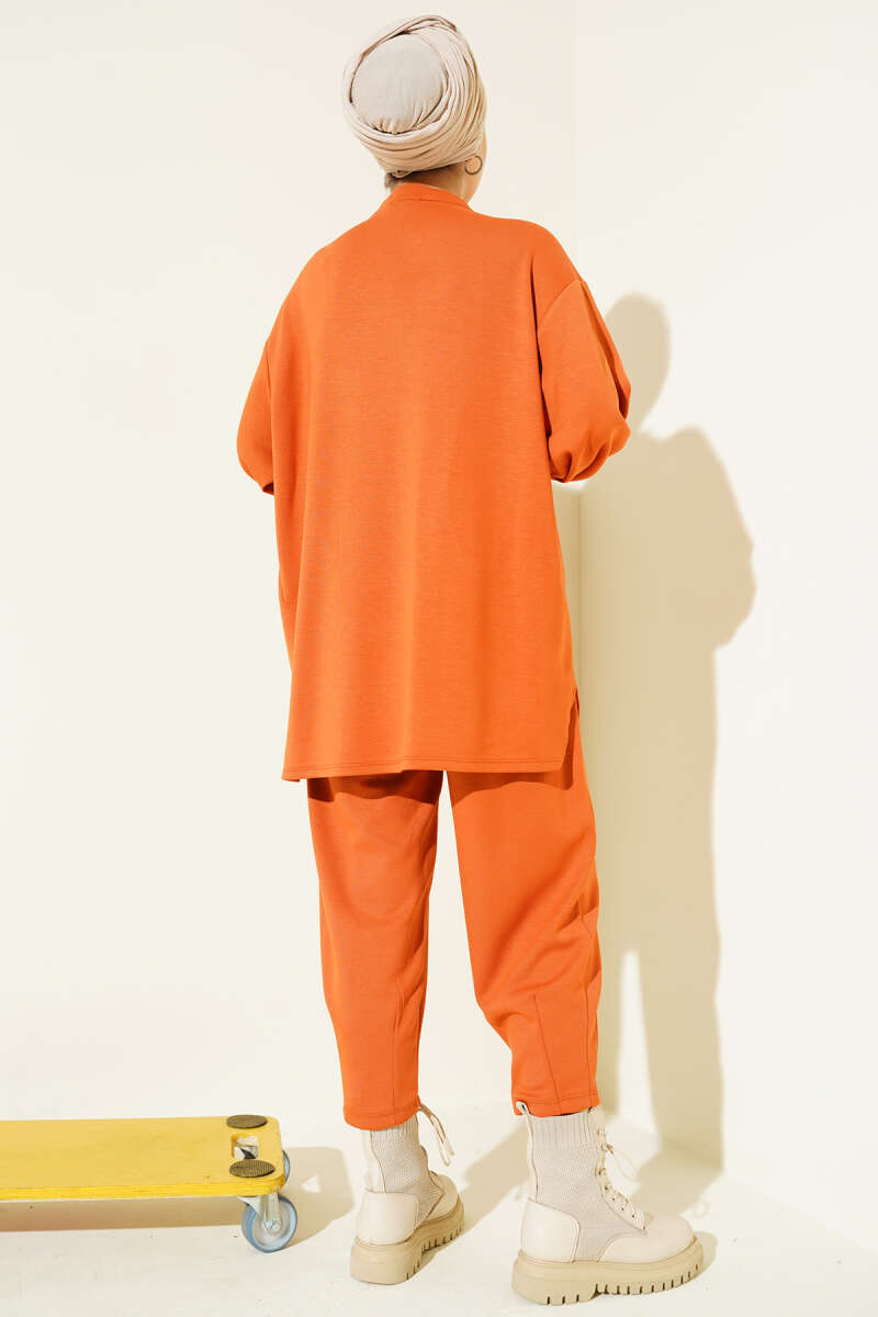 Önü Pileli Kemerli Scuba İkili Takım Kahve