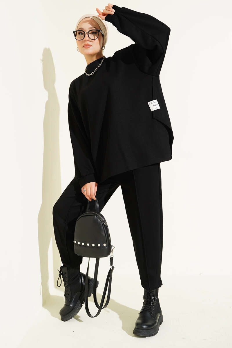 Önü Pileli Kemerli Scuba İkili Takım Füme