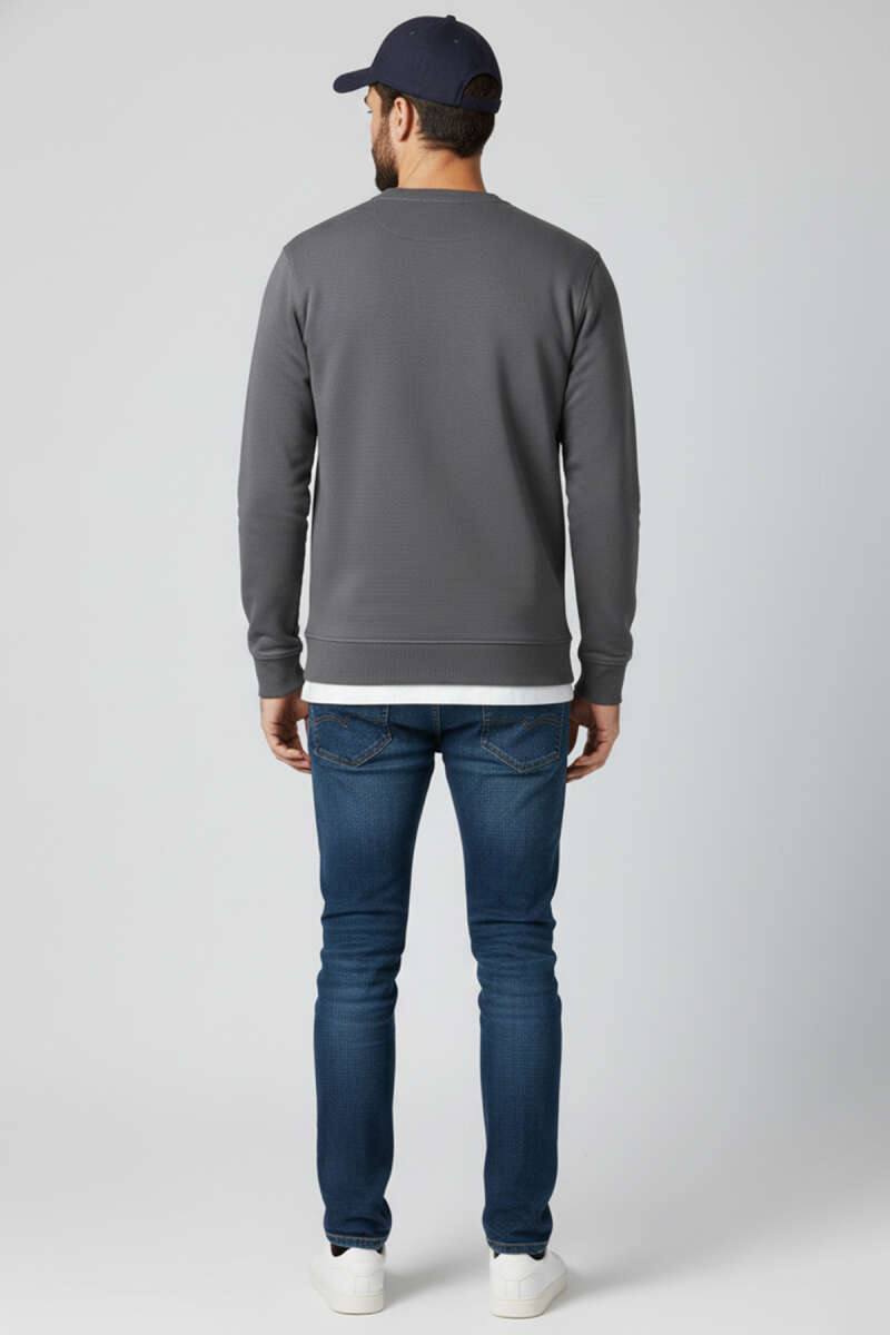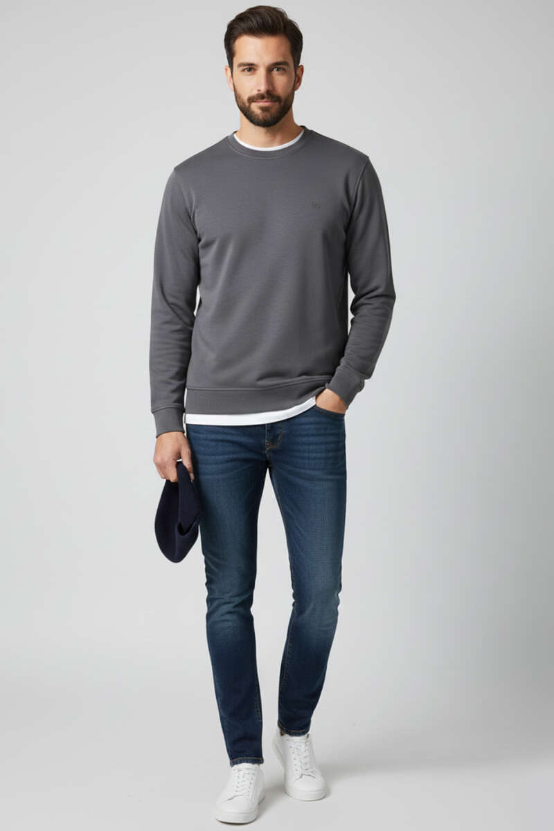 Bisiklet Yaka Manşetli Erkek Sweatshirt Siyah