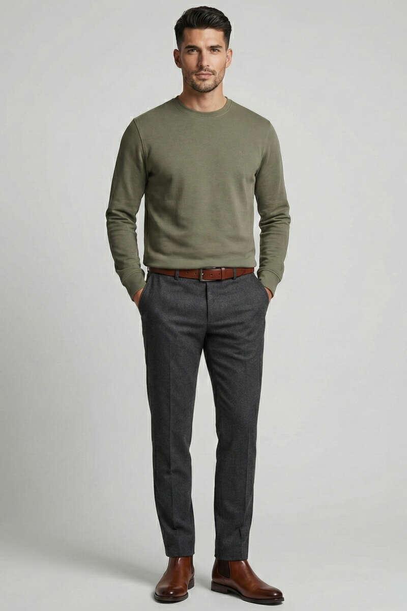 Bisiklet Yaka Manşetli Erkek Sweatshirt Füme