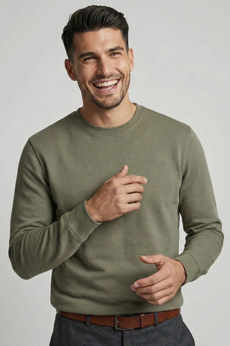 Bisiklet Yaka Manşetli Erkek Sweatshirt Kahve