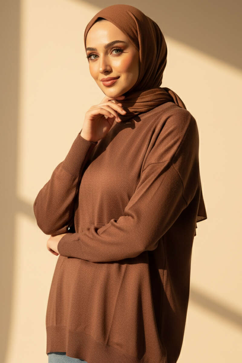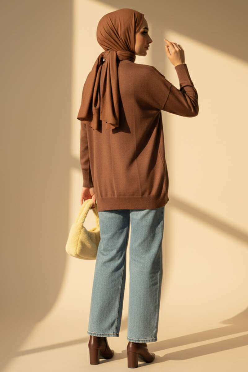 Alt Dikişli Yumoş Triko Tunik Ekru