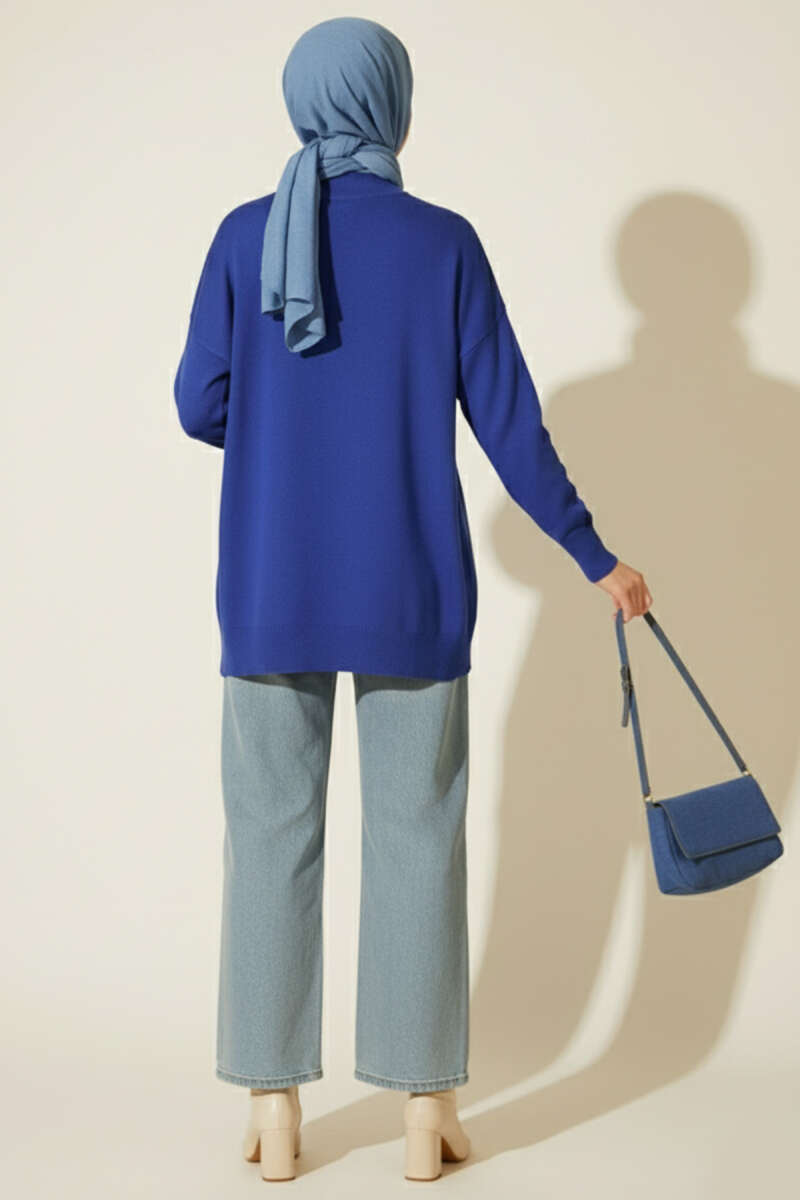 Düğmeli Kapüşonlu Buklet Hırka Lacivert