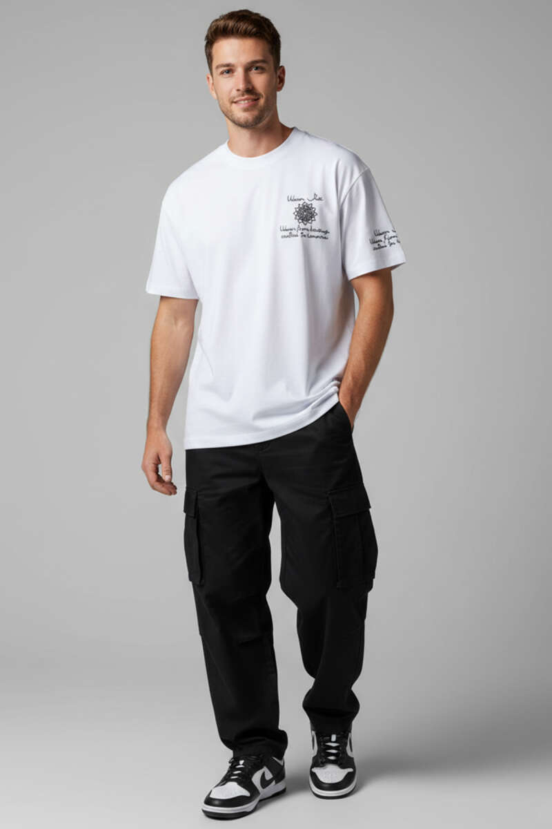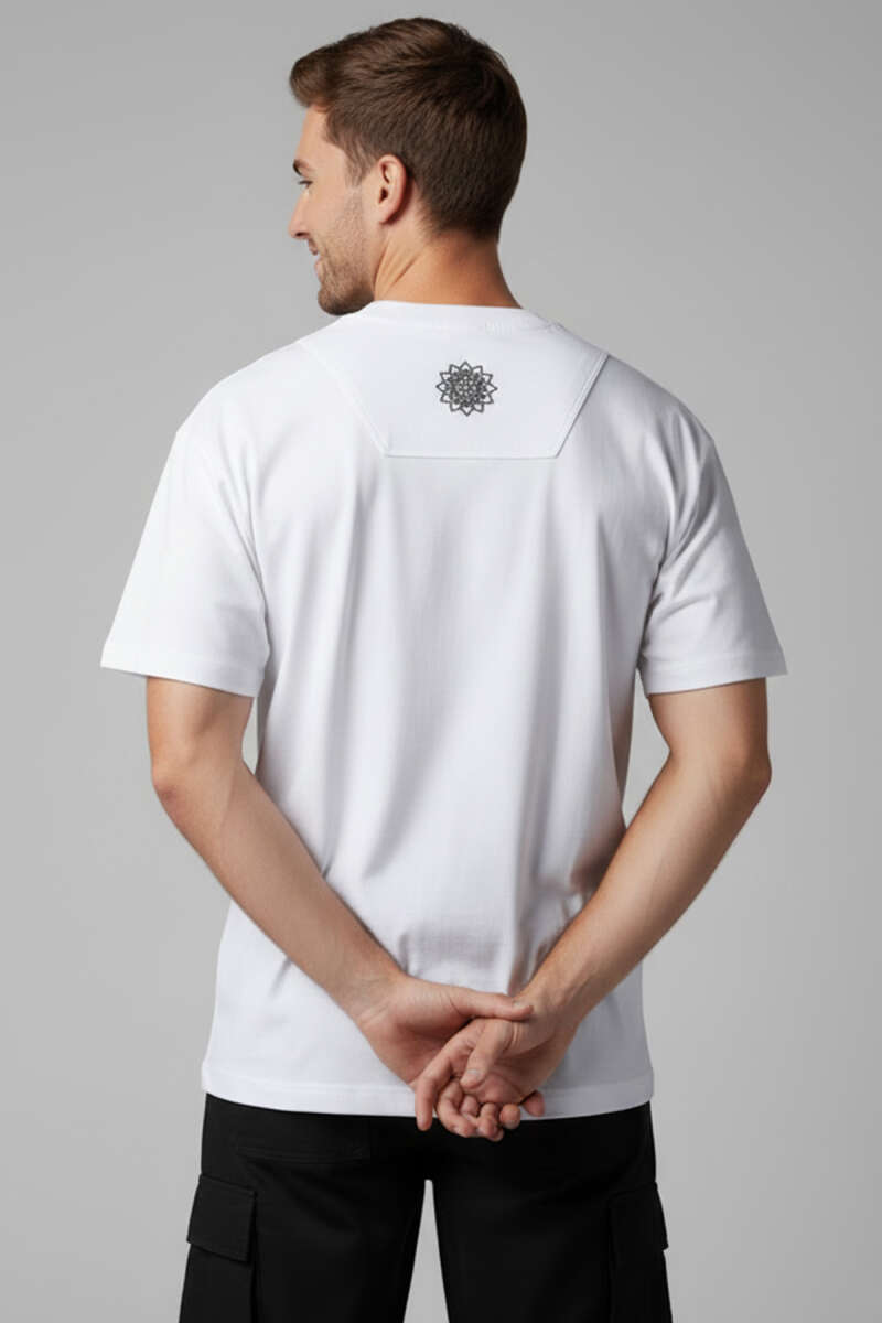 Bisiklet Yaka Nakışlı Oversize T-shirt Beyaz