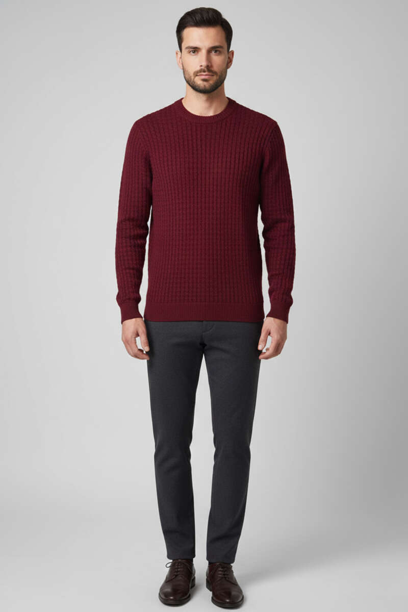 Bisiklet Yaka Örme Triko Erkek Kazak Füme