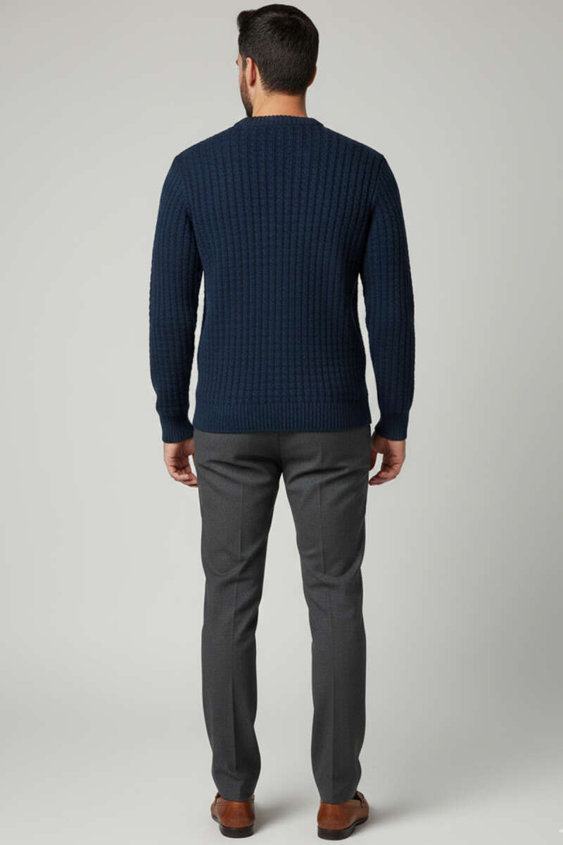 Bisiklet Yaka Örme Triko Erkek Kazak Lacivert